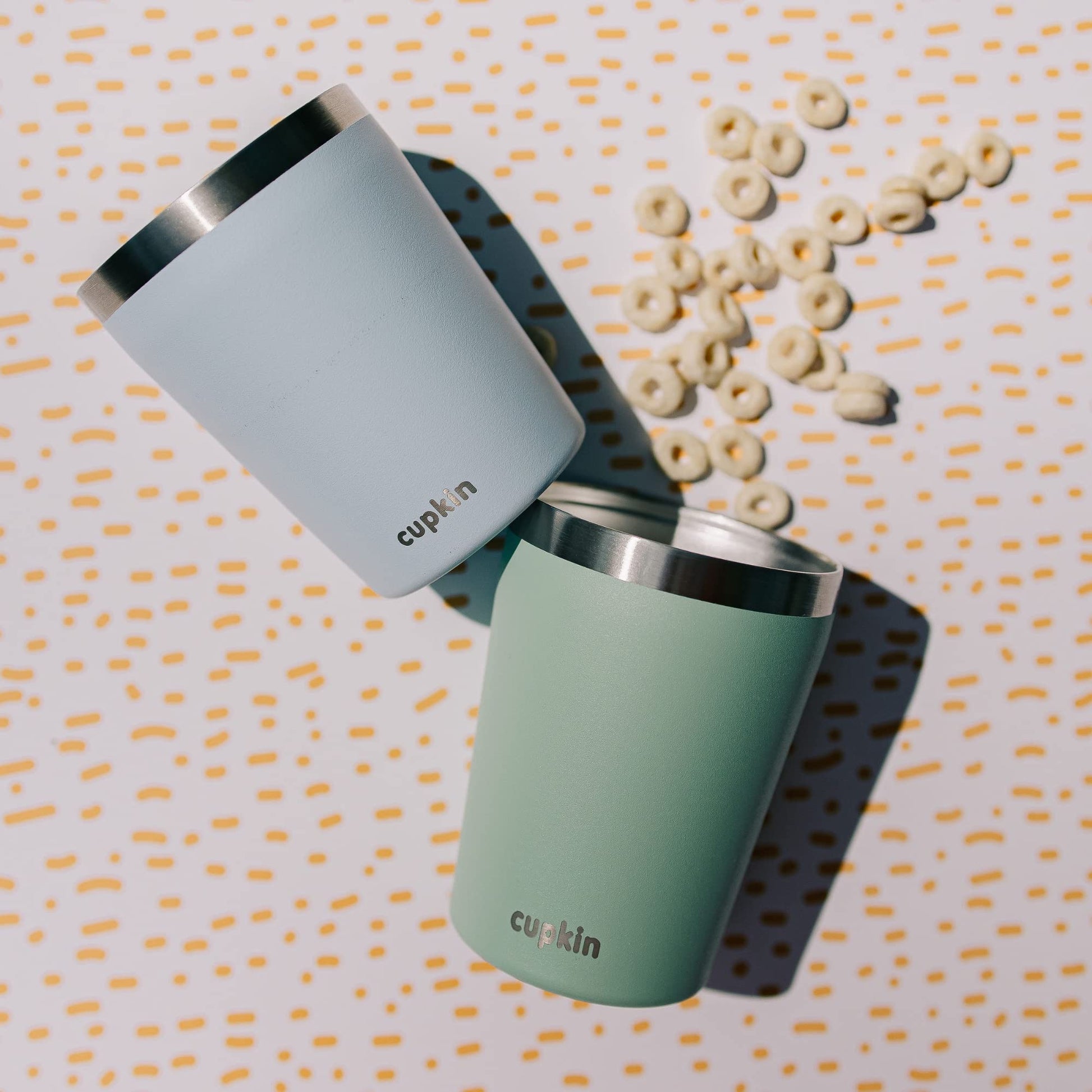 - Q: What colors are available for the CUPKIN cup? A: The CUPKIN Stackable Kids Cup is available in vibrant colors, including coral and yellow, which are achieved through a durable powder coating.