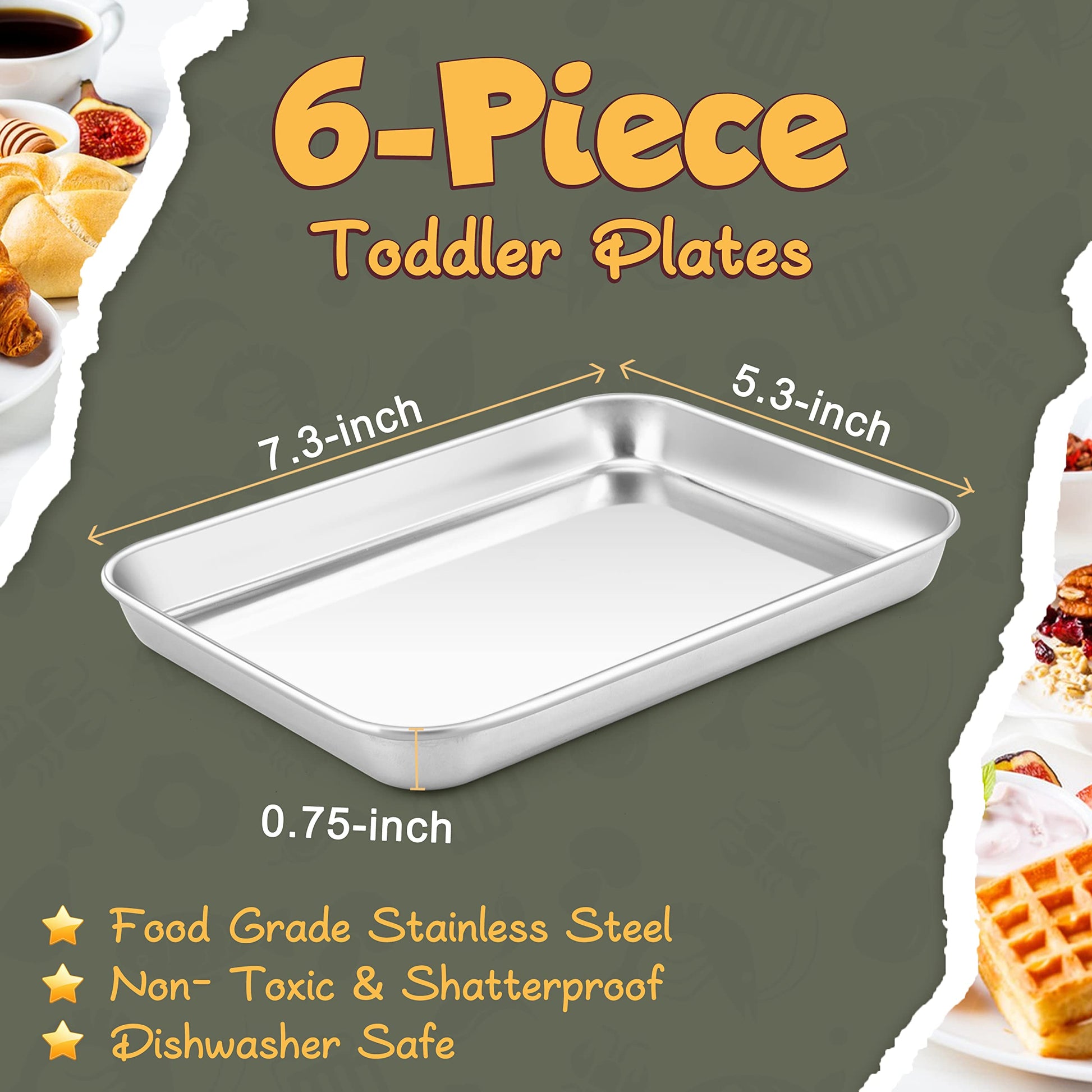 - Q: What are the dimensions of each plate? A: Each plate measures 7.3 inches in length, 5.3 inches in width, and 0.8 inches in height.