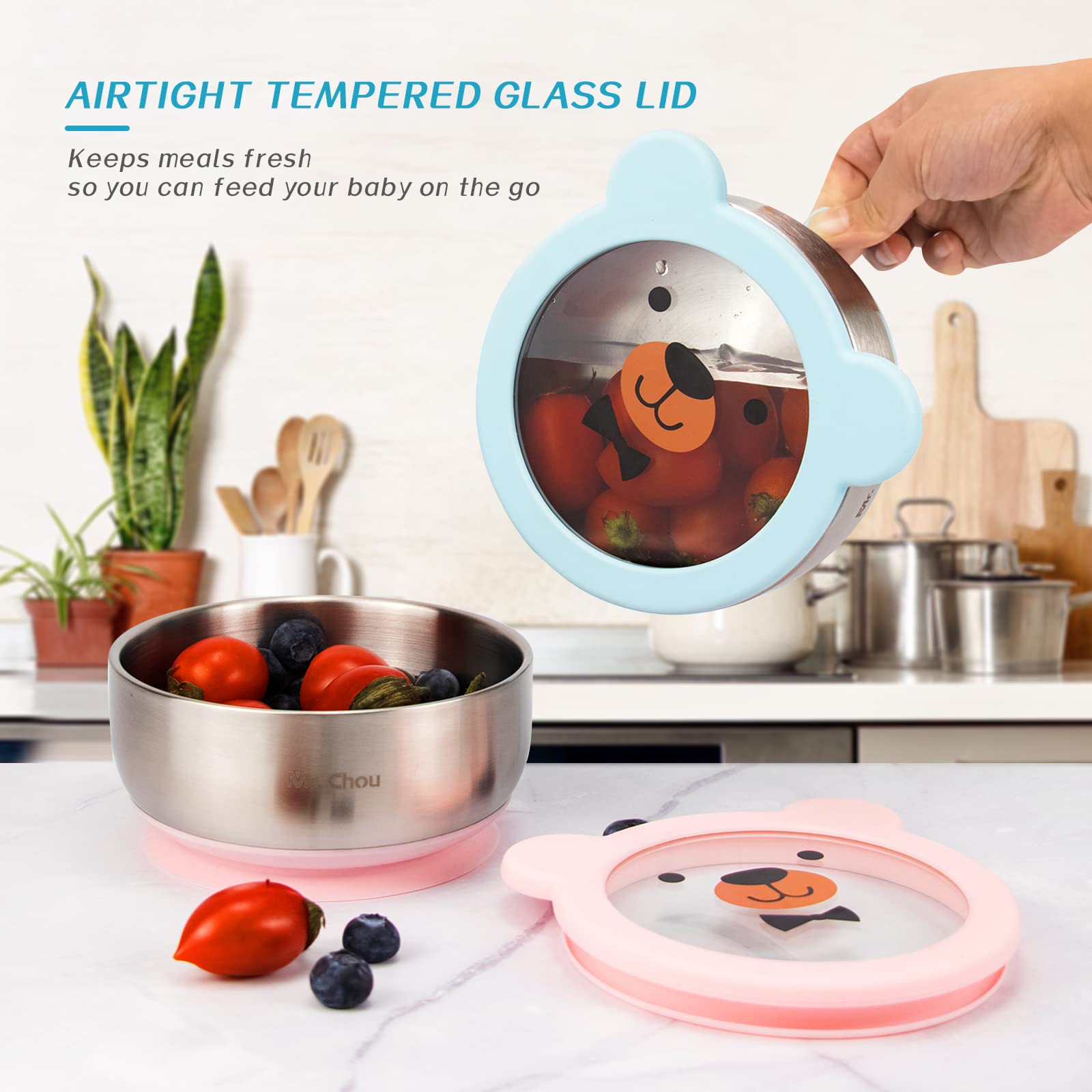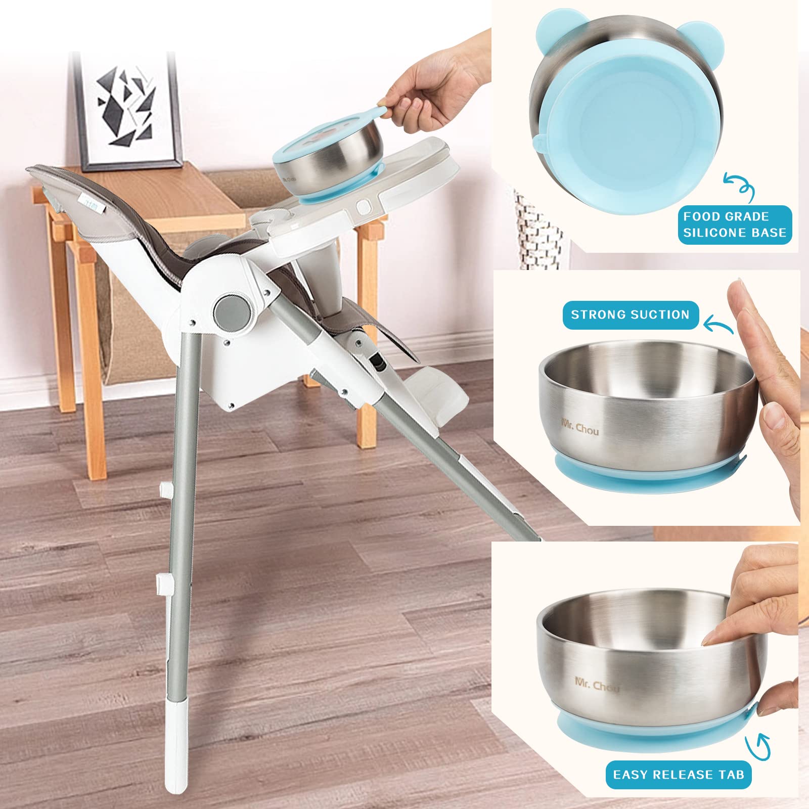 - Q: What colors are available for these bowls? A: The MR. CHOU Baby Bowls are available in bright colors, including a cheerful blue option, which features a cute bear pattern to engage children during mealtime.