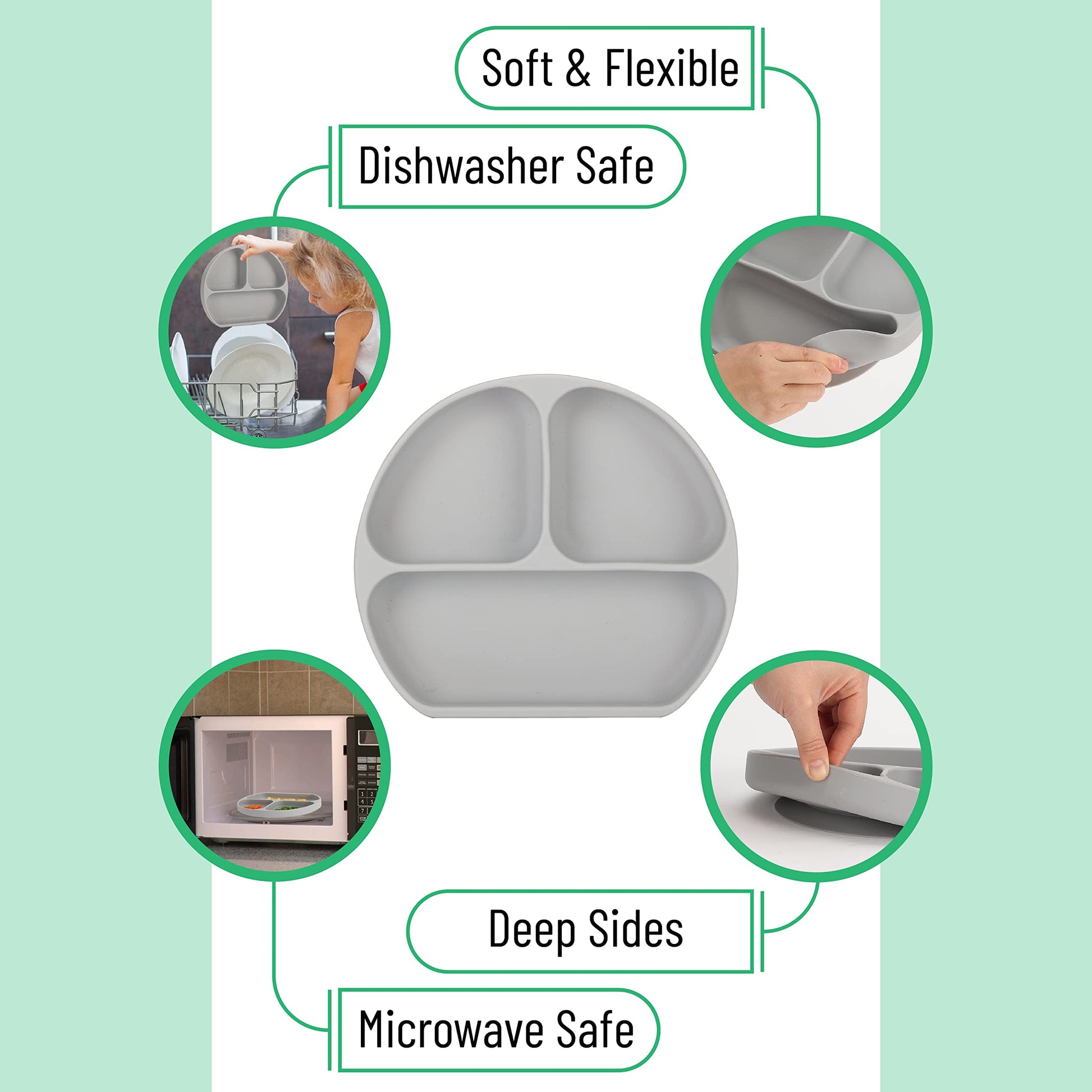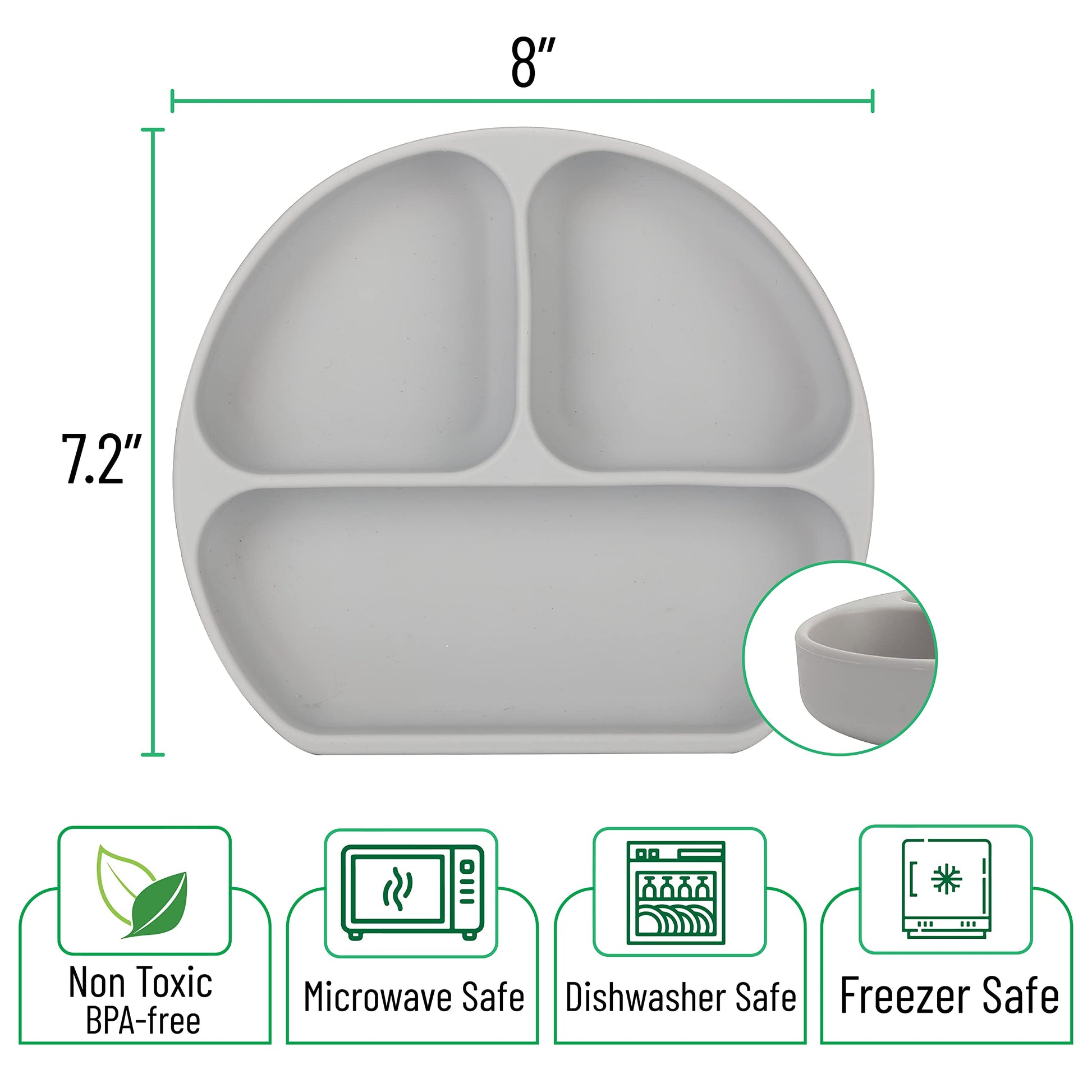 - Q: How does the suction feature work on these plates? A: The suction base of the plate securely attaches to any smooth surface, including high-chair trays, preventing spills and making it easier for toddlers to learn self-feeding.