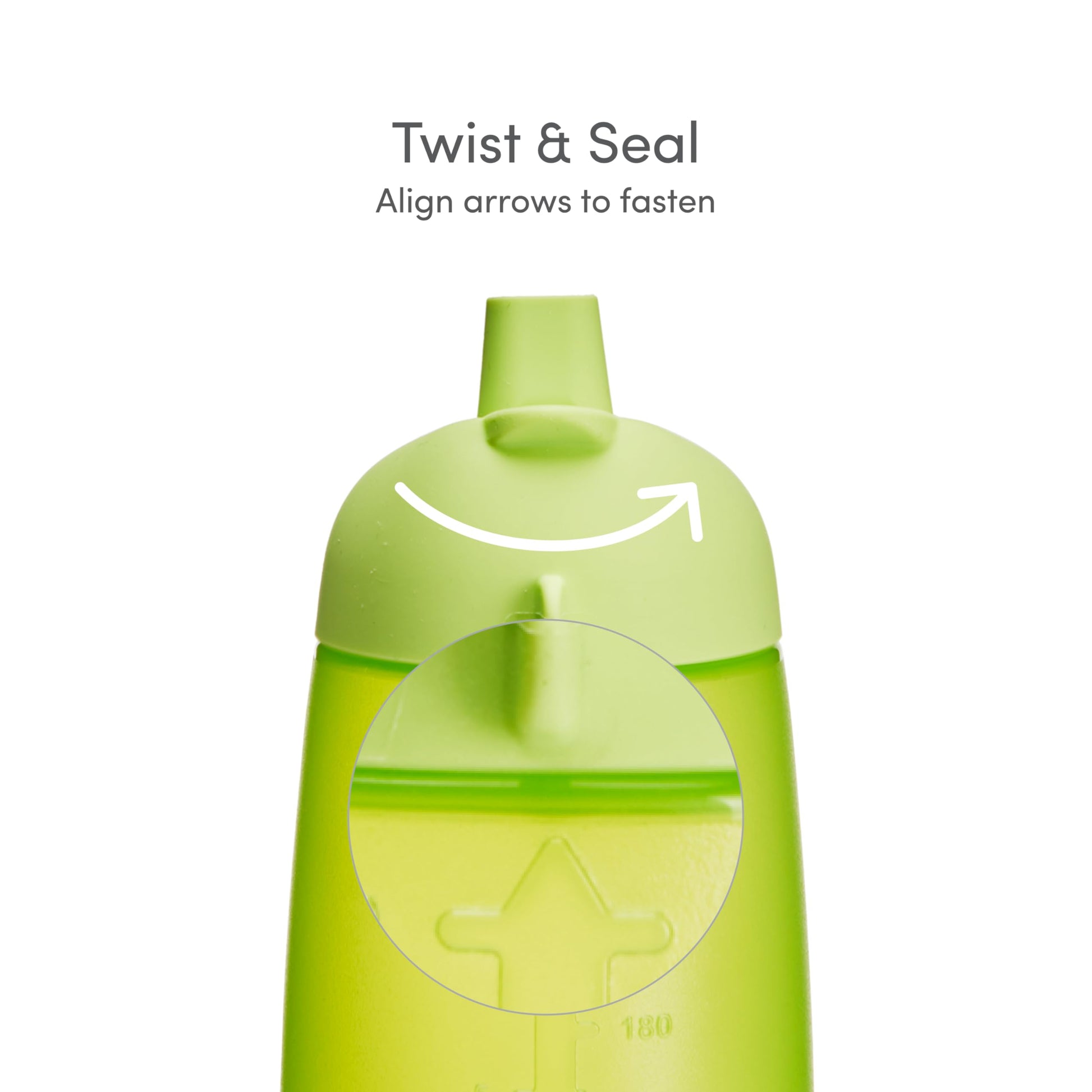 • Q: How does the spill-proof feature work on this sippy cup? A: The spill-proof feature works by twisting the lid into place, creating a secure seal that prevents leaks and spills.