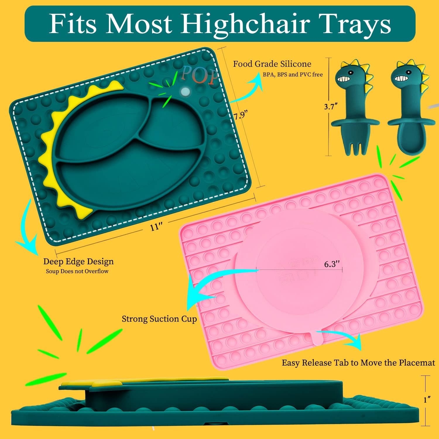- Q: How does the suction feature work on this placemat? A: The suction feature allows the plate to stick easily and firmly to flat surfaces, preventing spills and messes during mealtime.