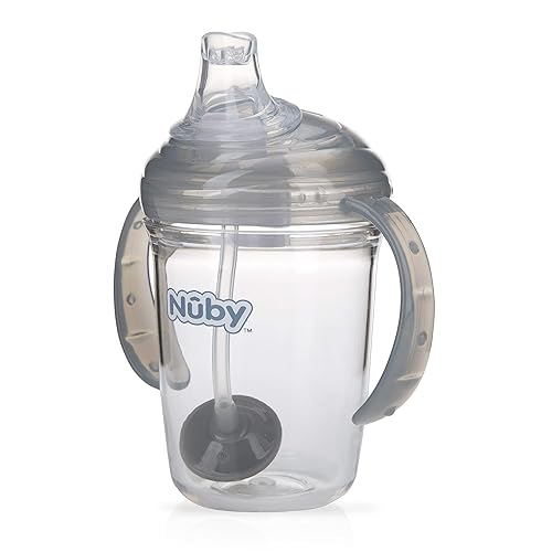 - Q: What colors are available for the Nuby Twin Handle 360 Grip N' Sip Cup? A: The cup is available in various colors, including grey, to suit different preferences.