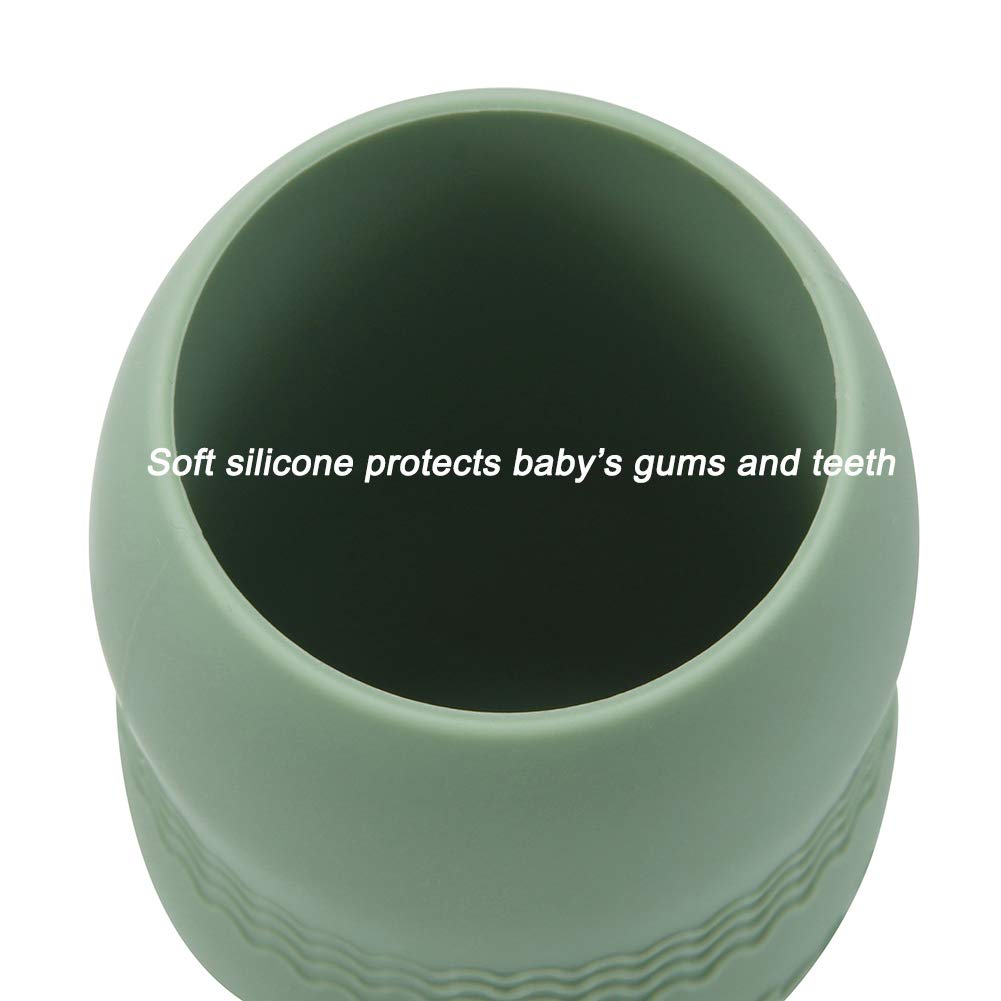 Pandaear (2 Pack 100% Tiny Silicone Drinking Training Cup For Baby And Toddler (Blue/Green)