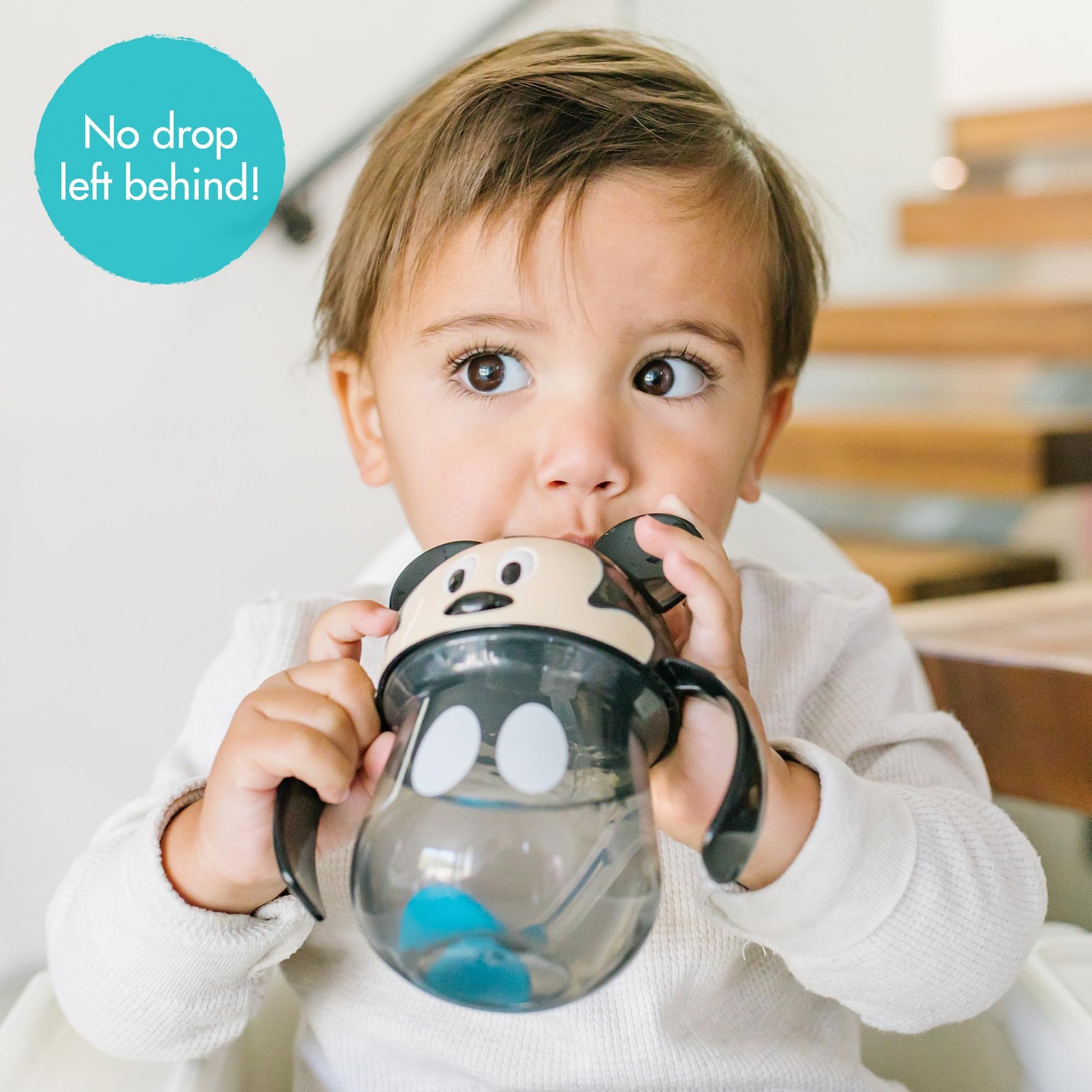 - Q: How does the weighted straw feature work? A: The weighted end of the straw remains submerged in the liquid, allowing your child to sip from any angle without spills.
