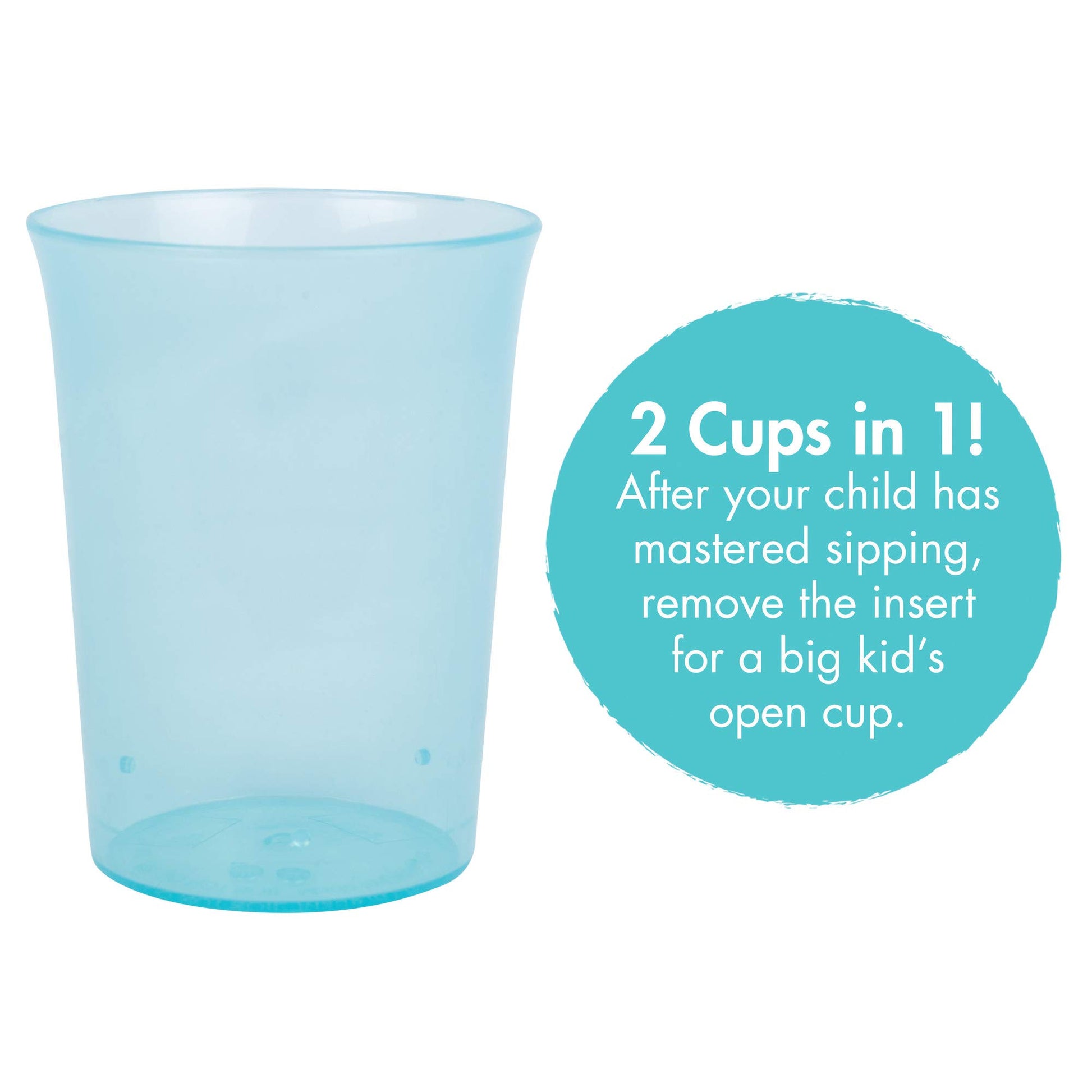 Ready to trade in those sippy cups for big kid open cups? Help your child with the transition and let them get the perfect sip every time with My First Open Cup from The First Years. This practice kids cup features a Spill Control insert that fits inside the bottom part of the cup and allows just the right amount of liquid out for an easy practice sip. The cup's rim is just like a regular cup. This makes it easy for your child to get used to sipping from an open cup, but with less mess. And its simple to use! Fill the insert with water and place it in the cup. Then let your child Tip it to Sip it. Theyll get the perfect amount of water and will soon be sipping like a pro! After your child has mastered sipping, just remove the insert and you'll have a perfect big kid's open toddler cup for them to use. Both the toddler training cup and insert are top rack dishwasher safe, so keeping them clean is stress-free and simple, plus they're made without BPA.