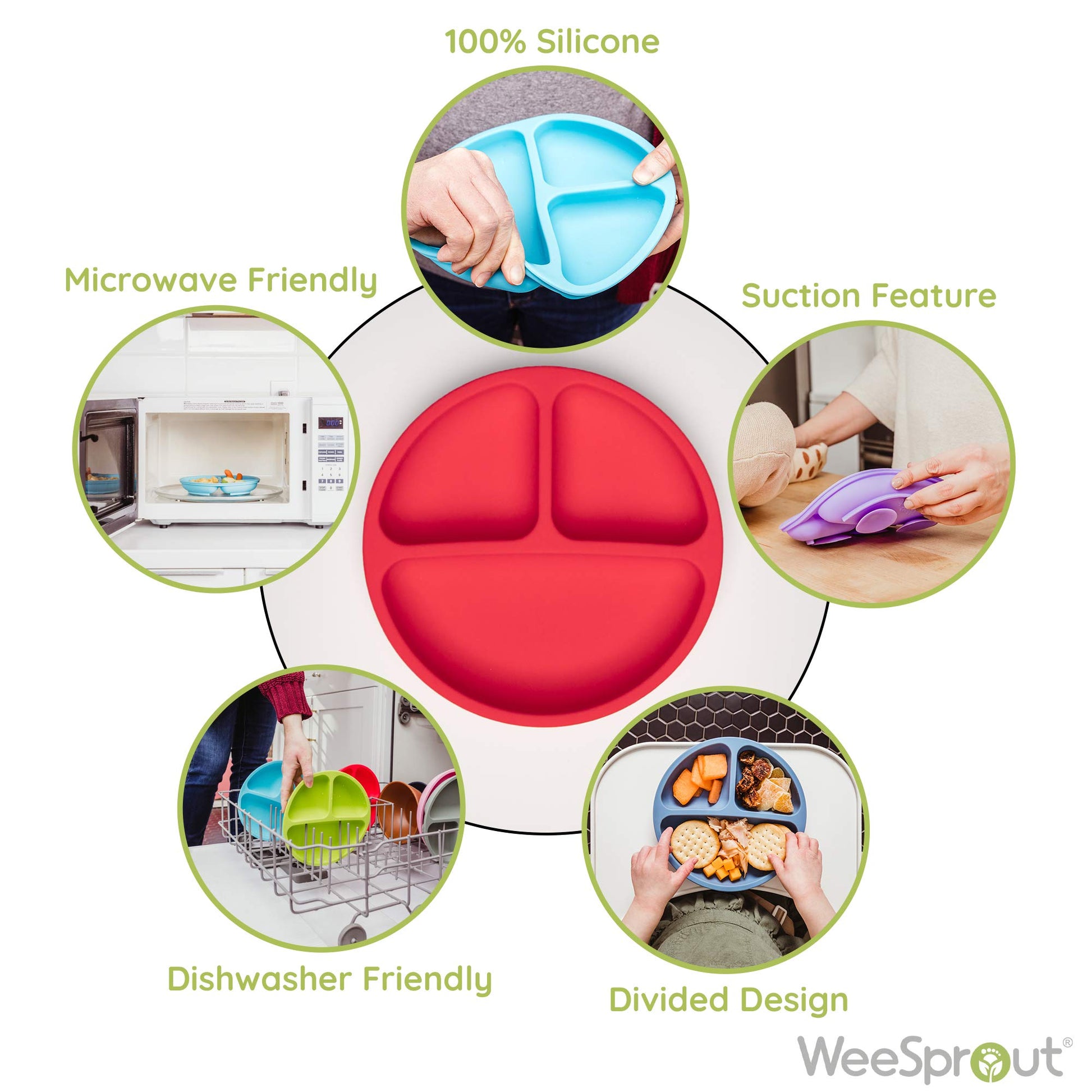 - Q: What colors are available for the WeeSprout suction plates? A: The plates are available in several fun colors, allowing you to choose a set that appeals to your child's preferences.