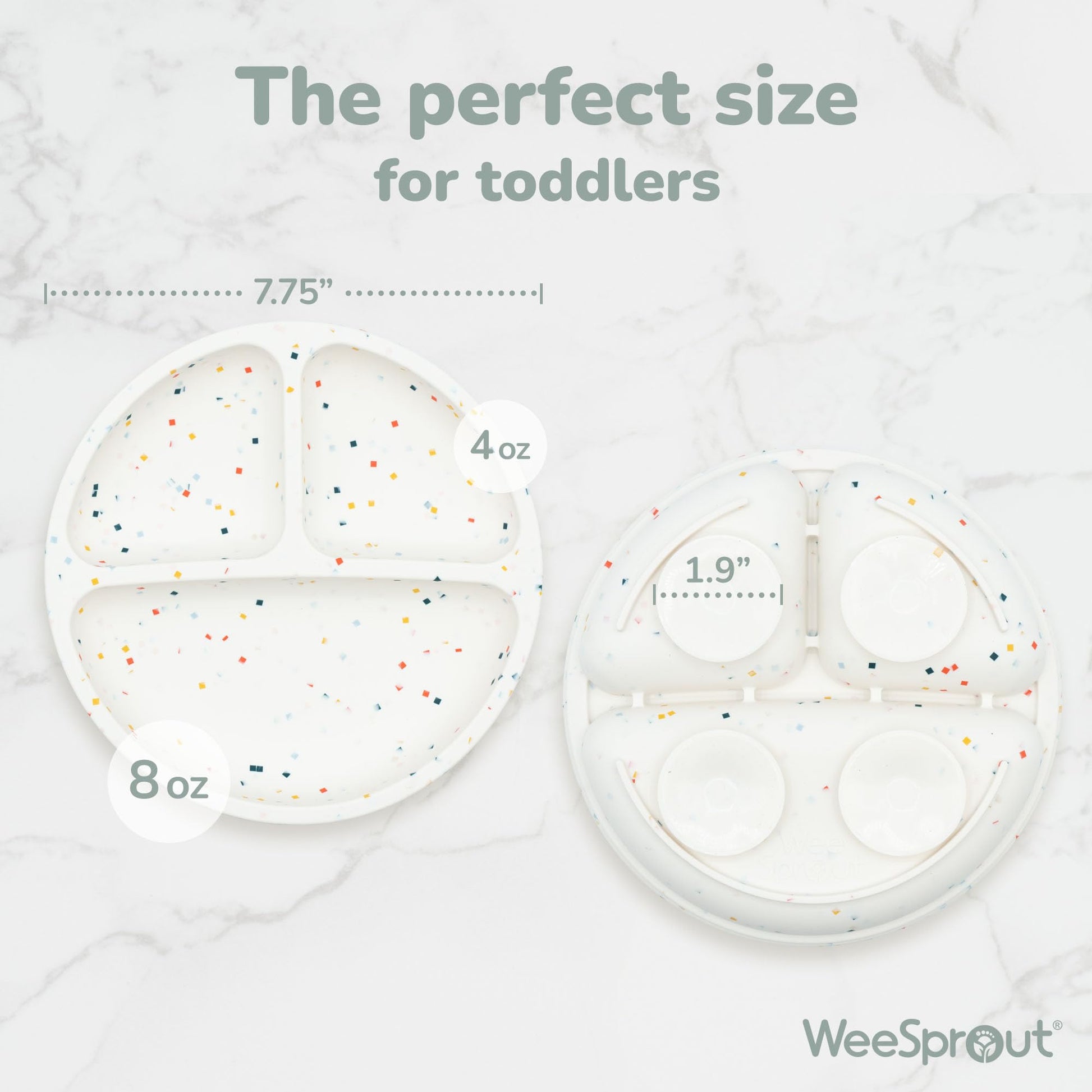 Weesprout Suction Plates For Babies With Lids & Toddlers - 100% Silicone, Dinnerware Stays Put, Divided Design For Picky Eaters,