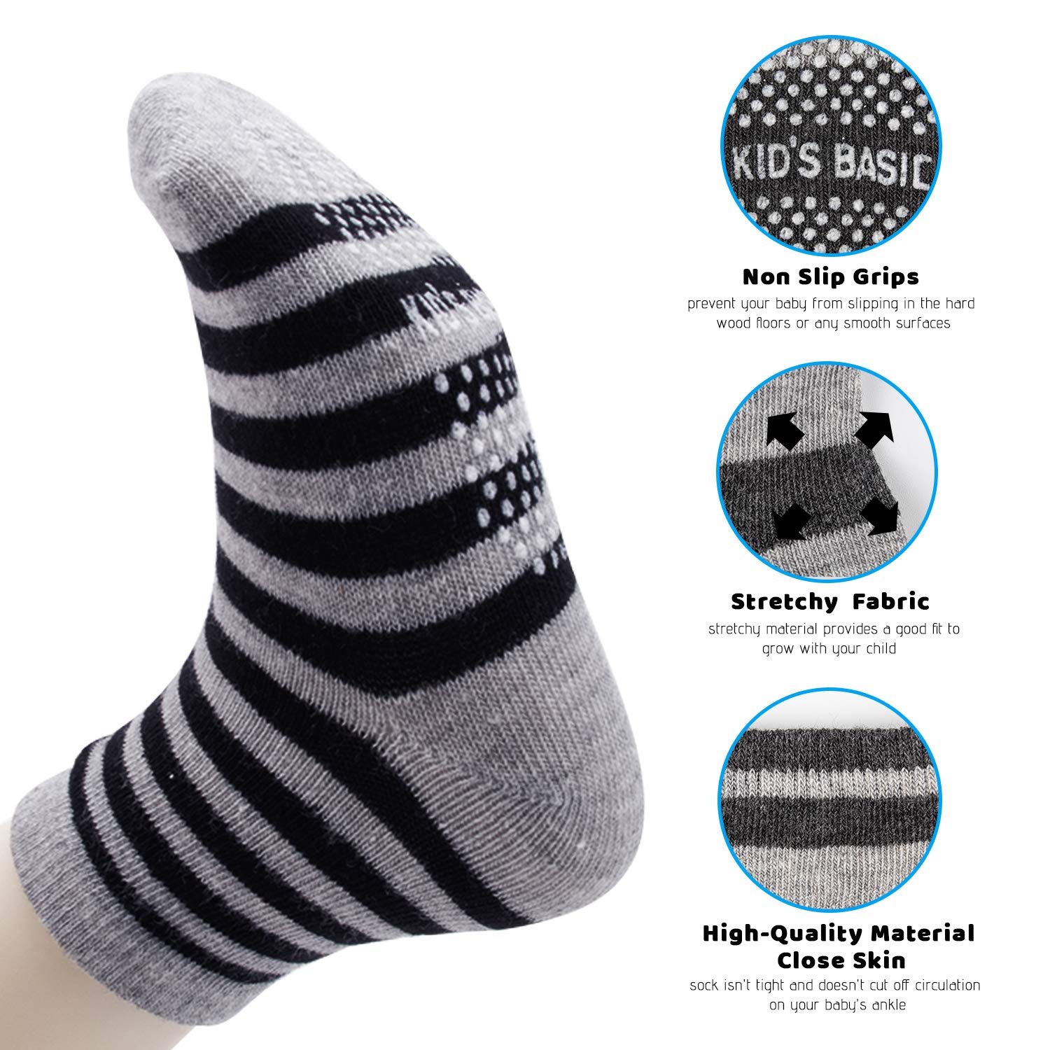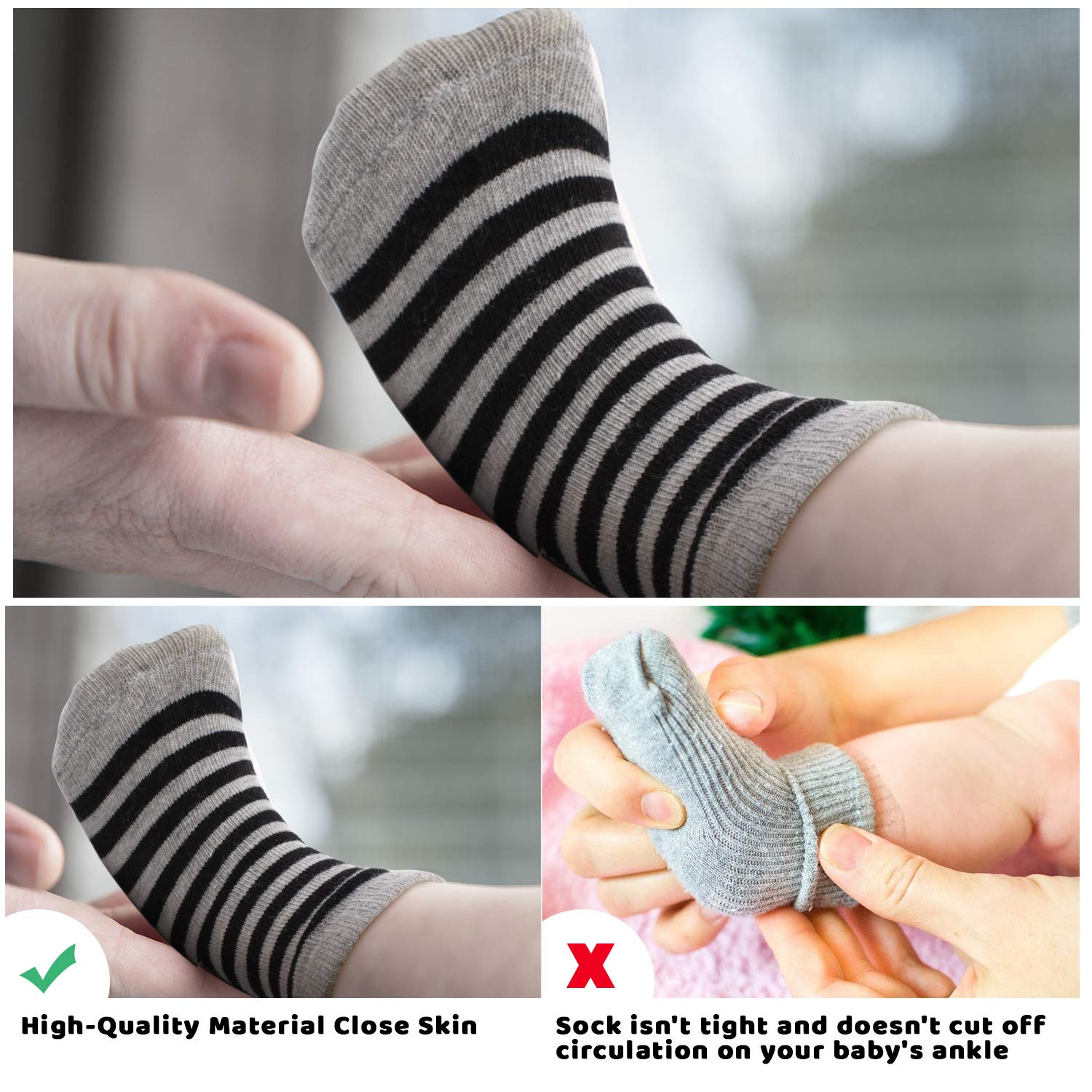 - Q: Are these socks comfortable for all-day wear? A: Yes, the cotton-rich fabric ensures comfort, and the elastic design helps keep the socks securely on the baby's feet.