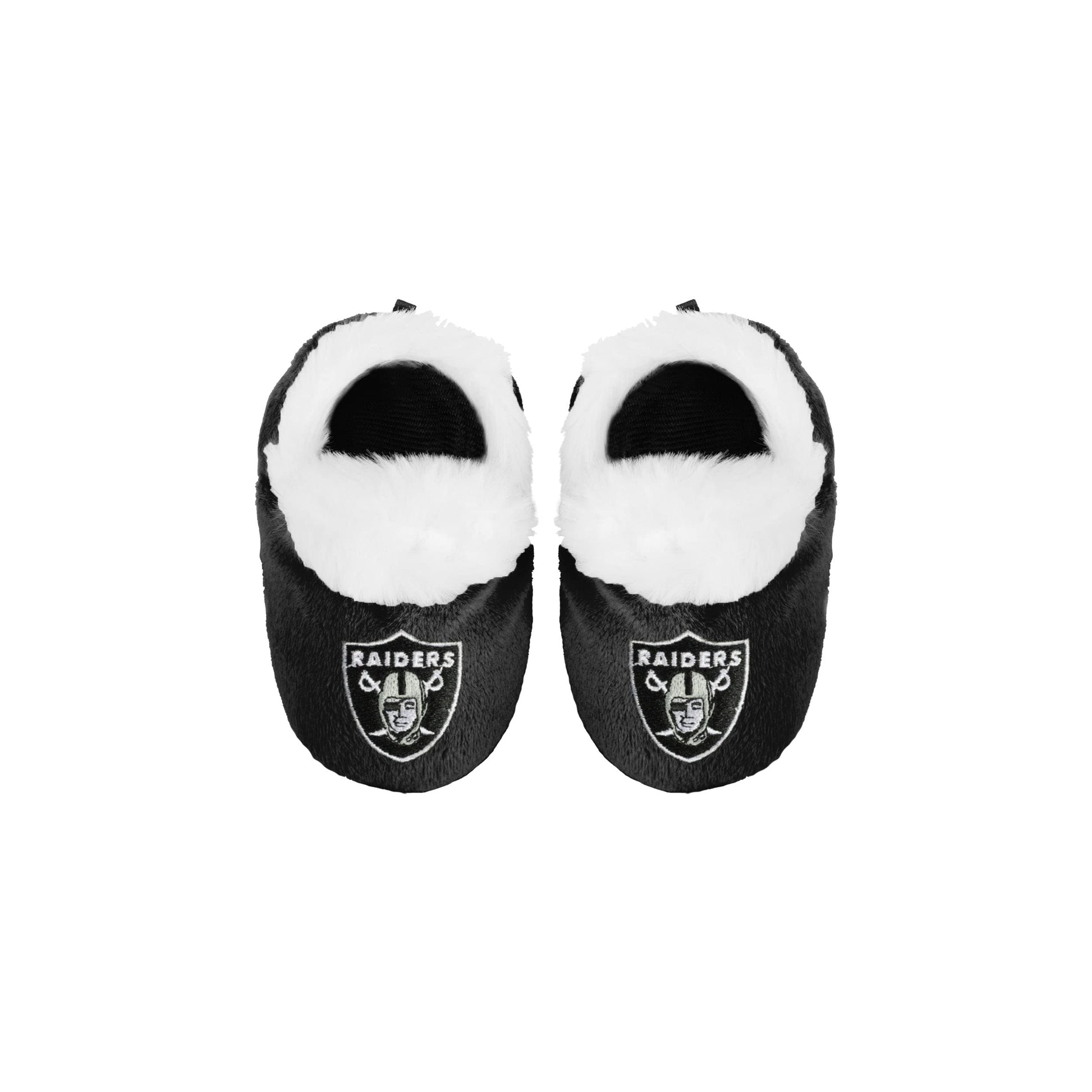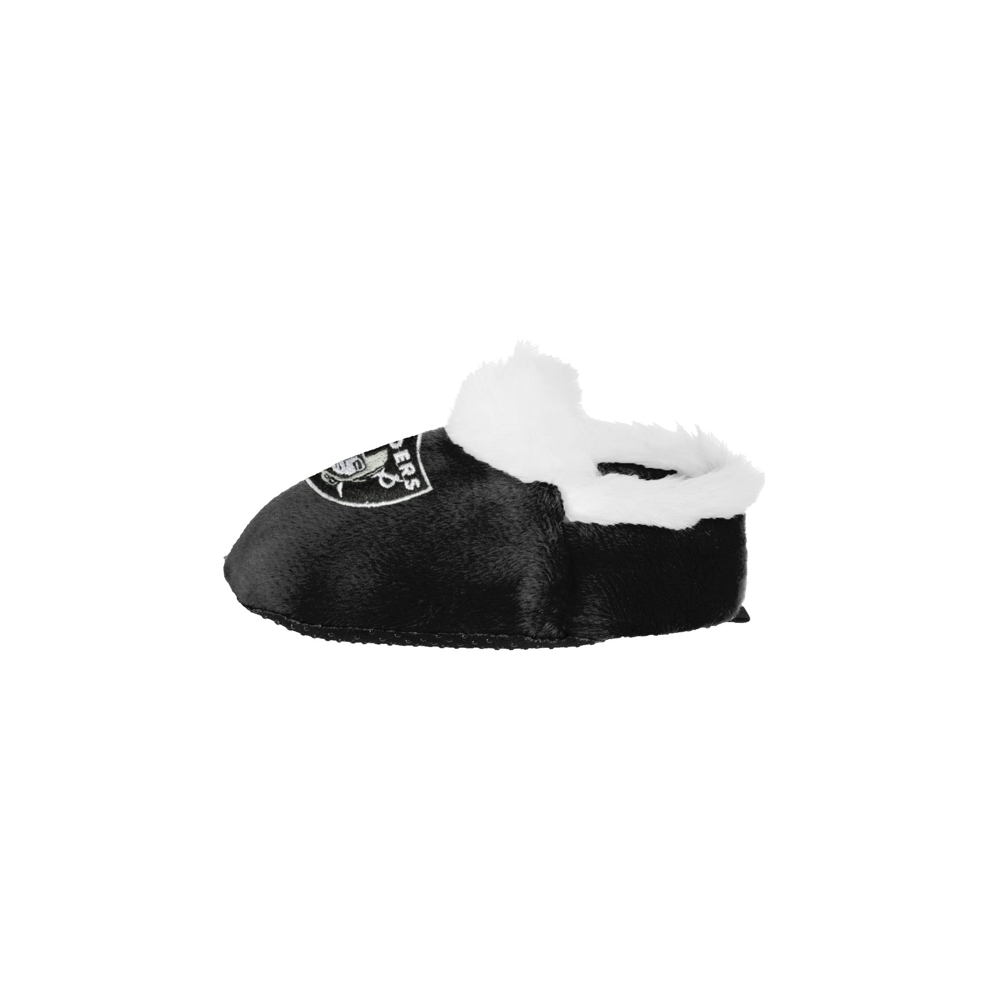 - Q: What colors are available for these baby bootie slippers? A: The slippers are available in the team color, which is black and silver, reflecting the Oakland Raiders' branding.