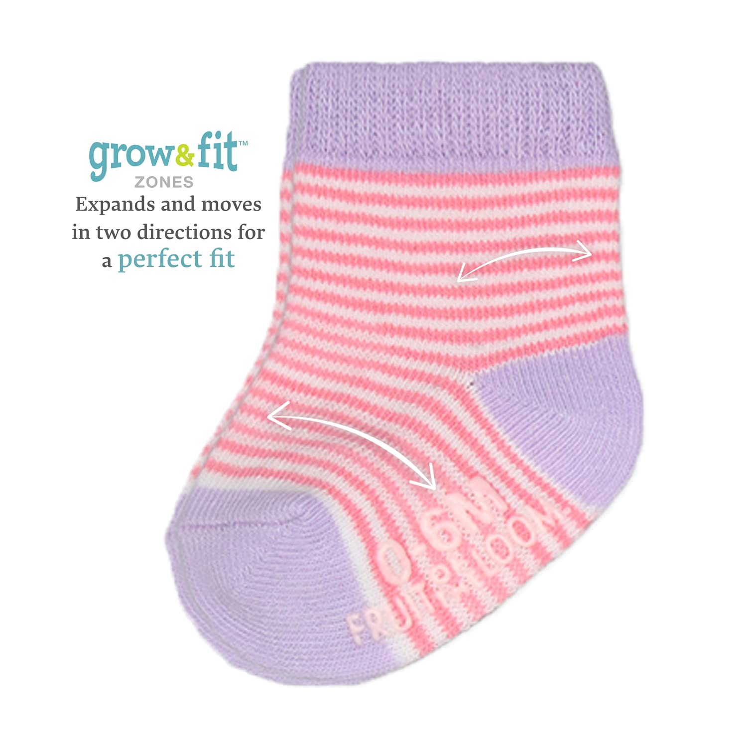 - Q: Do these socks have any special features for comfort? A: Yes, the socks feature GROW & FIT ZONES, which are ribbed areas designed for extra stretch, allowing them to fit comfortably as your baby grows.