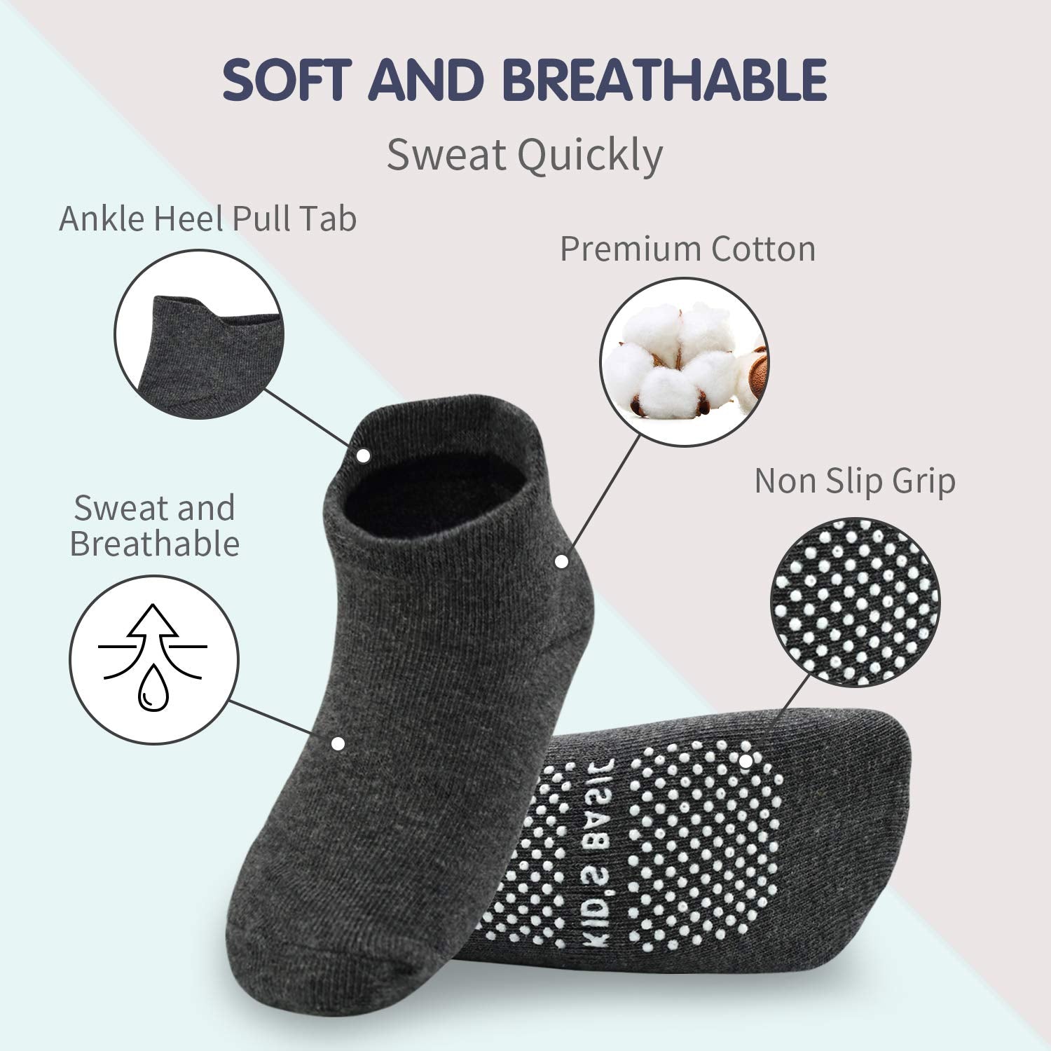 - Q: What are the main features of these toddler socks? A: The socks feature non-slip grips on the heels and balls of the feet, a calf length for added protection, and are made from a breathable and soft cotton blend.