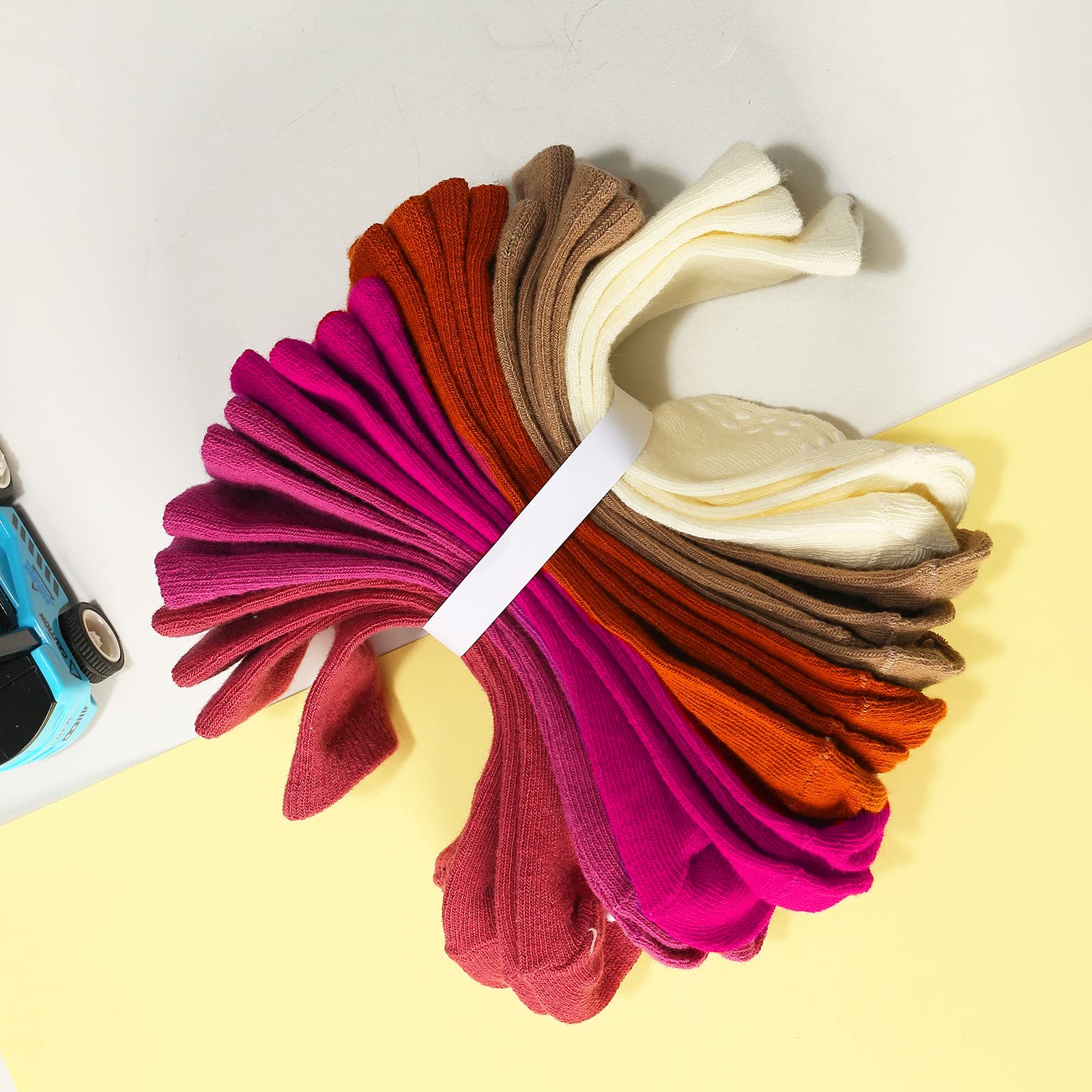 - Q: Are these socks non-slip? A: Yes, the socks feature anti-slip rubber dots on the bottom to provide extra grip, making them ideal for active toddlers and helping to prevent slips, especially on stairs.