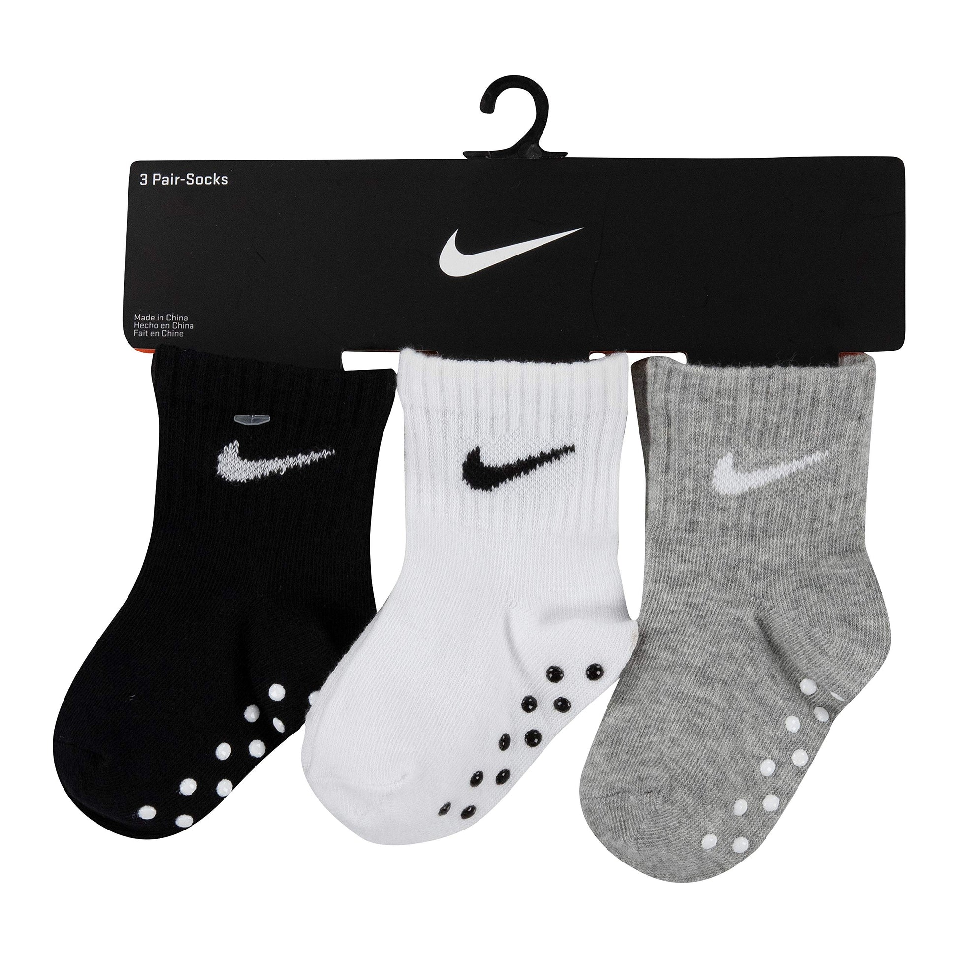 - Q: Do these socks come in different colors? A: Yes, the NIKE Children's Apparel Baby Ankle Gripper Socks are available in a combination of black, white, and grey.
