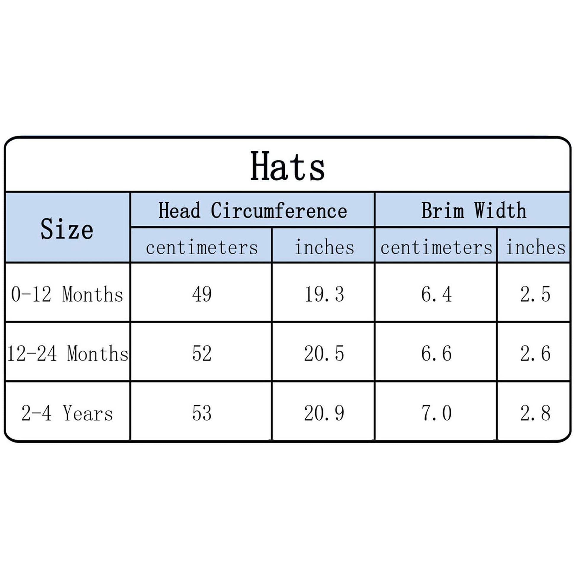 - Q: What other sizes are available for this hat? A: In addition to the size for 12-24 months, the hat is also available in sizes for 0-12 months and 2-4 years, with inner circumferences of 19.3 inches and 21 inches respectively.