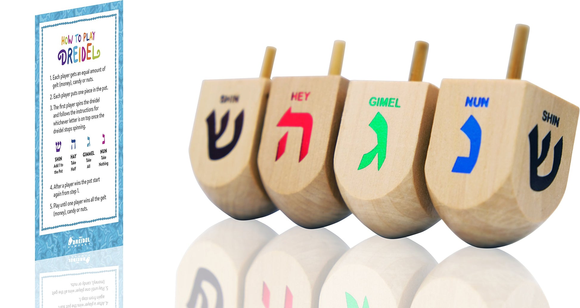 - Q: Are the dreidels hand-painted? A: Yes, each dreidel is hand-painted, featuring foil embossed Hebrew letters and English translations.
