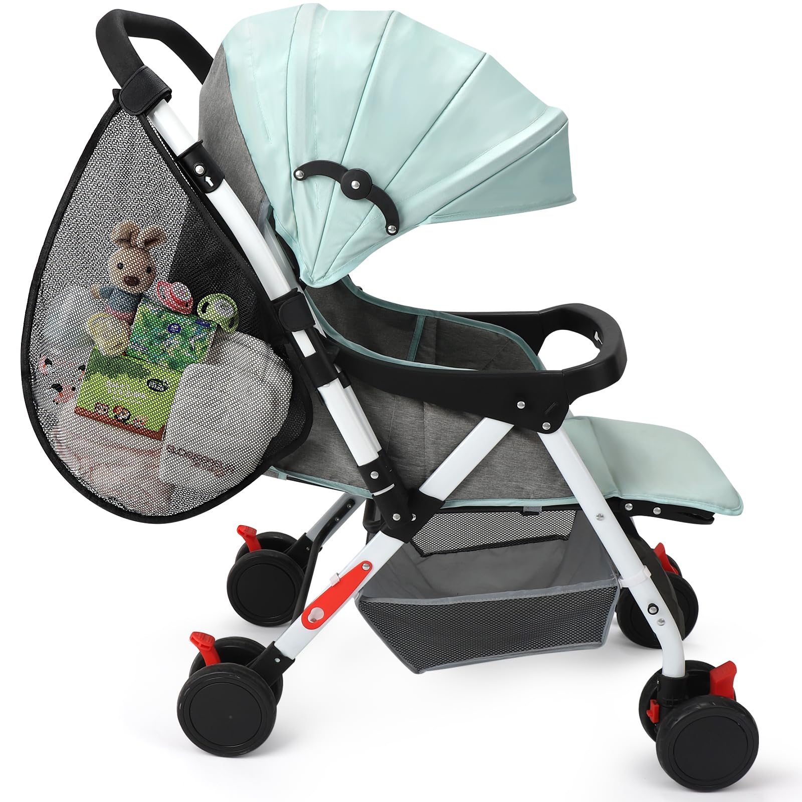 - Q: How do I install the stroller organizer? A: The stroller organizer features an adjustable Velcro connection strap, making it easy to install on the side of most strollers.