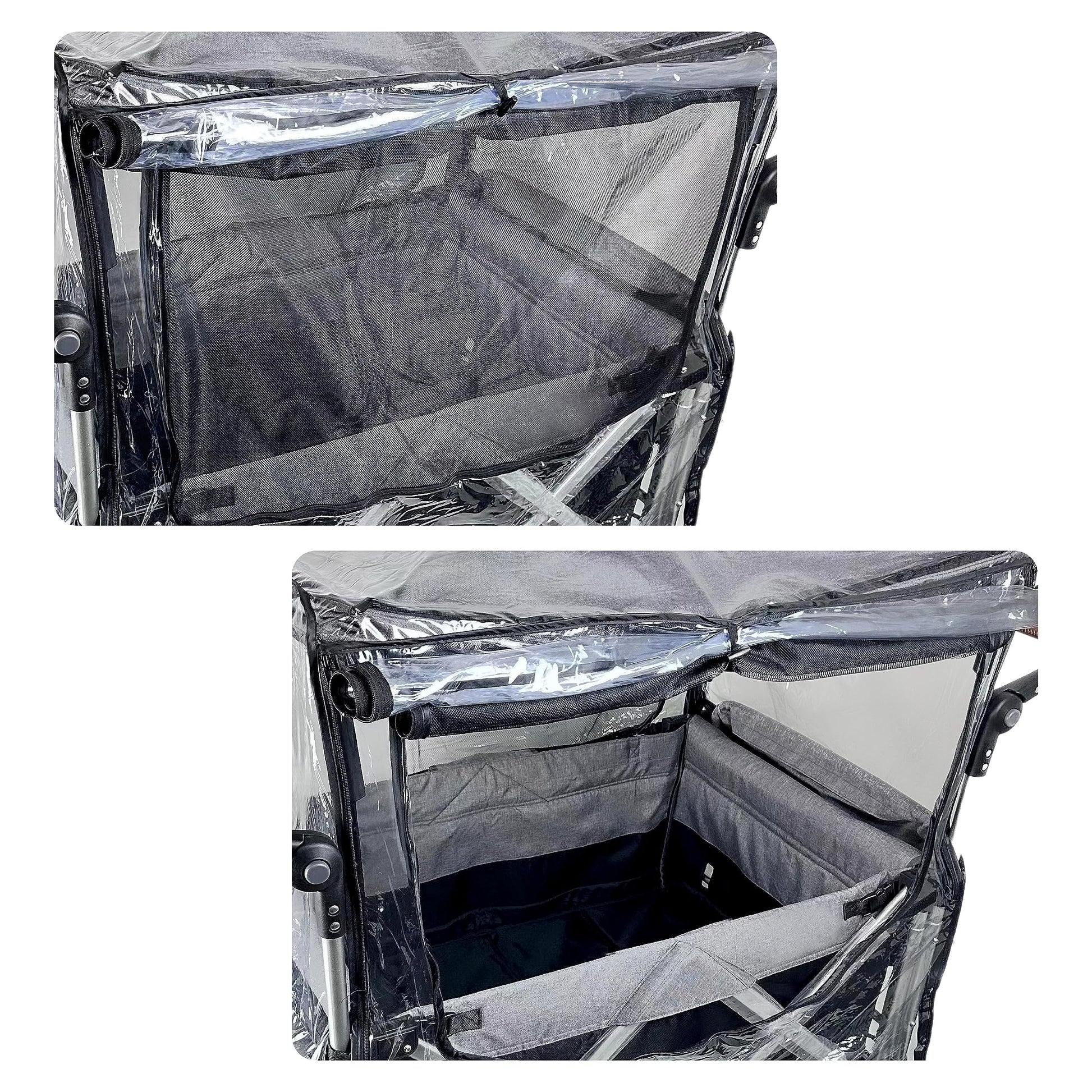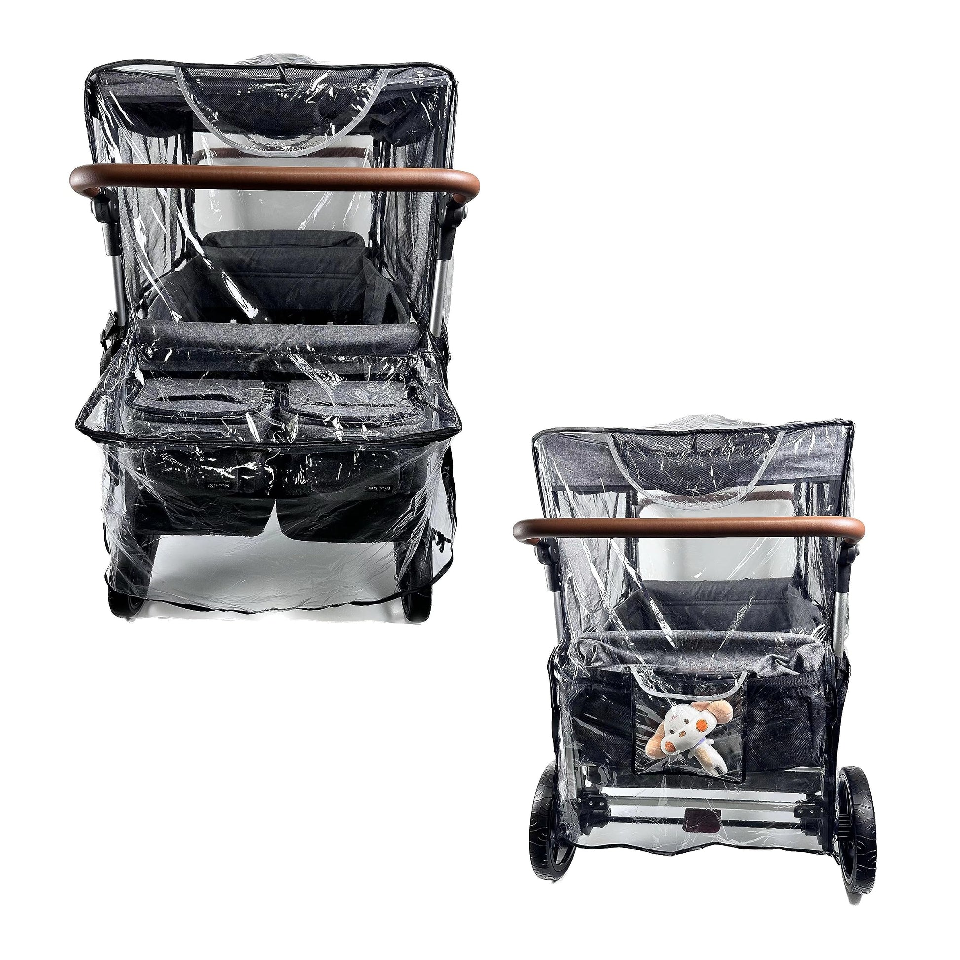 - Q: Is this rain cover compatible with all types of strollers? A: The rain cover is designed to fit most two or four seat big stroller wagons, making it versatile for various models.