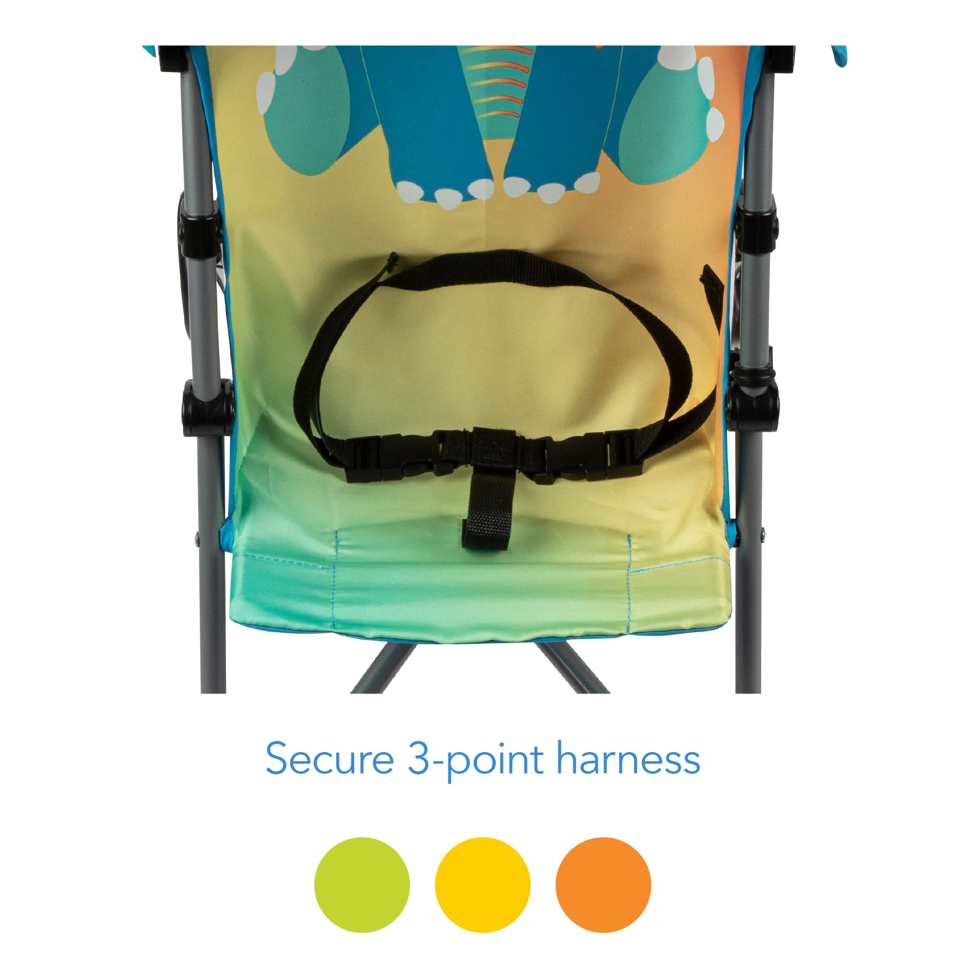 - Q: What type of harness does this stroller use? A: The stroller is equipped with a secure 3-point harness to ensure your child's safety while riding.