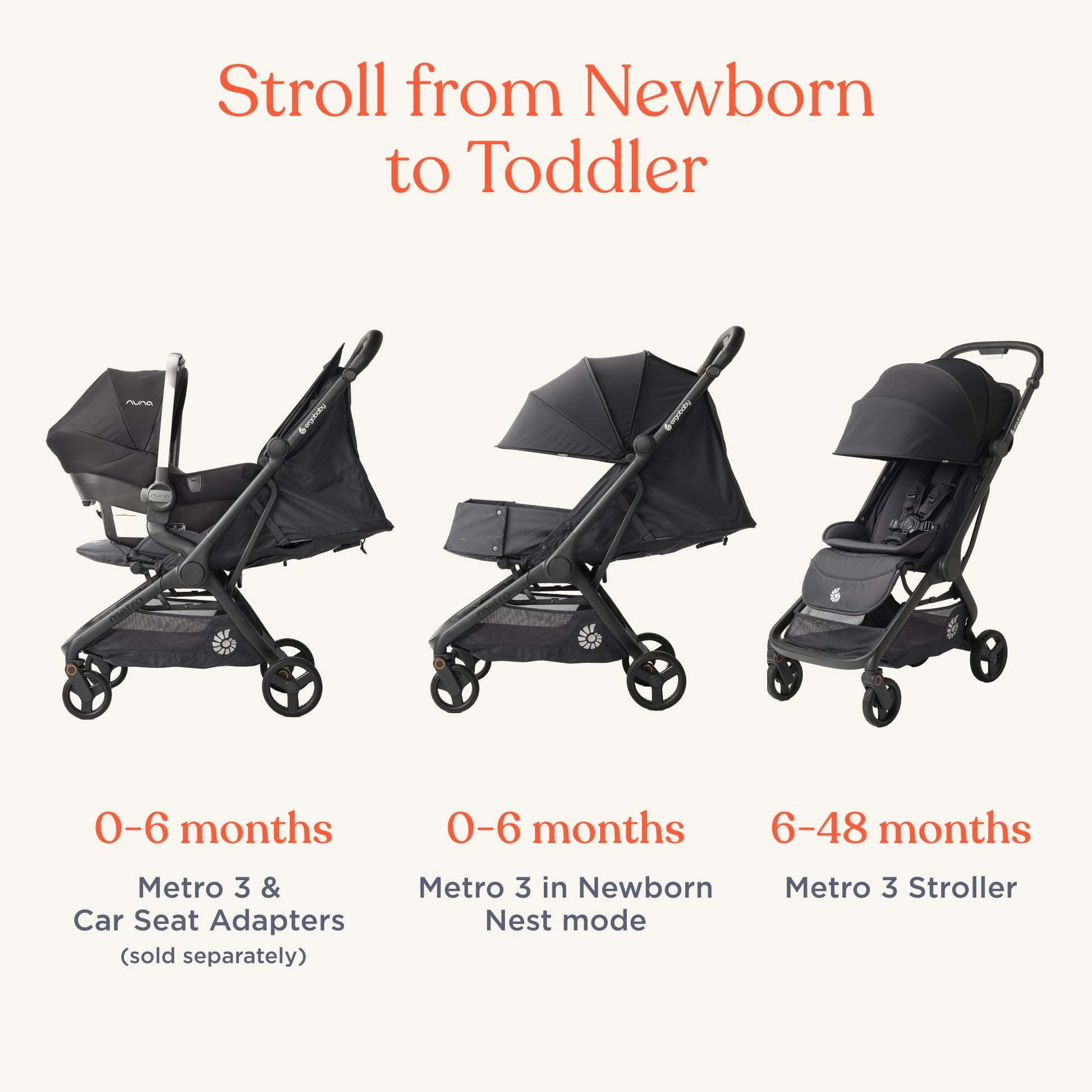 - Q: Can the Ergobaby Metro 3 stroller be used for newborns? A: Yes, it is newborn-ready with an integrated Newborn Nest mode.