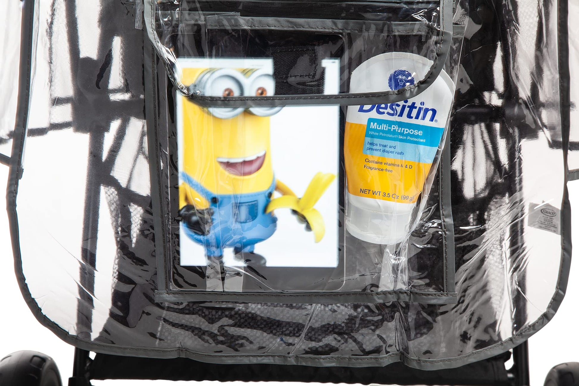 - Q: Does the weather shield offer any additional features? A: Yes, the weather shield includes a storage pocket for baby essentials, a smartphone, and cash, enhancing convenience while on the go.