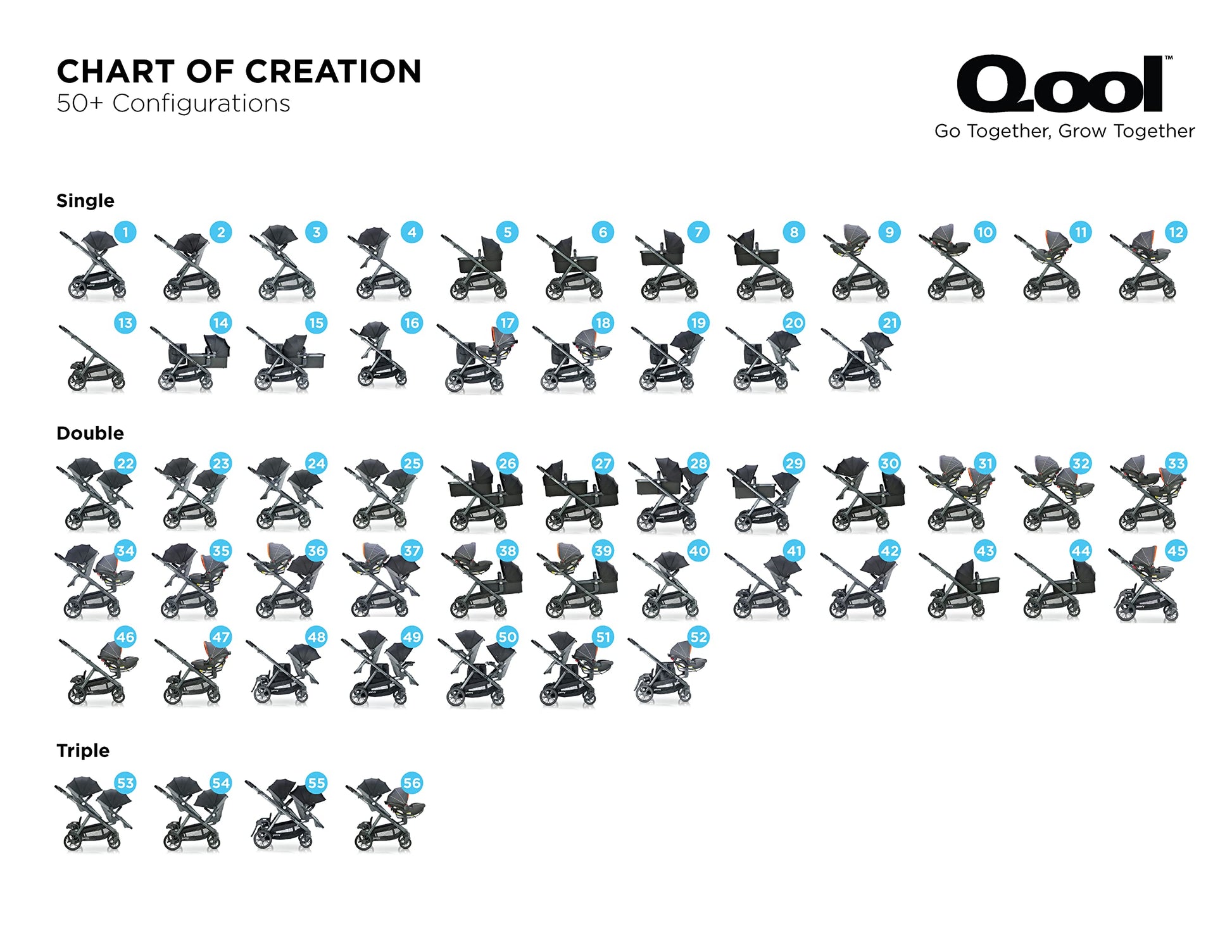 - Q: What are the key features of the Joovy Qool Stroller? A: The Joovy Qool Stroller features 56 configurations, allowing it to convert from a single to a double or triple stroller. It includes a removable and machine-washable seat fabric, an expandable UPF 50 canopy, and compatibility with various car seat brands. The stroller supports children up to 55 lbs per seat and can carry a total weight of up to 110 lbs.