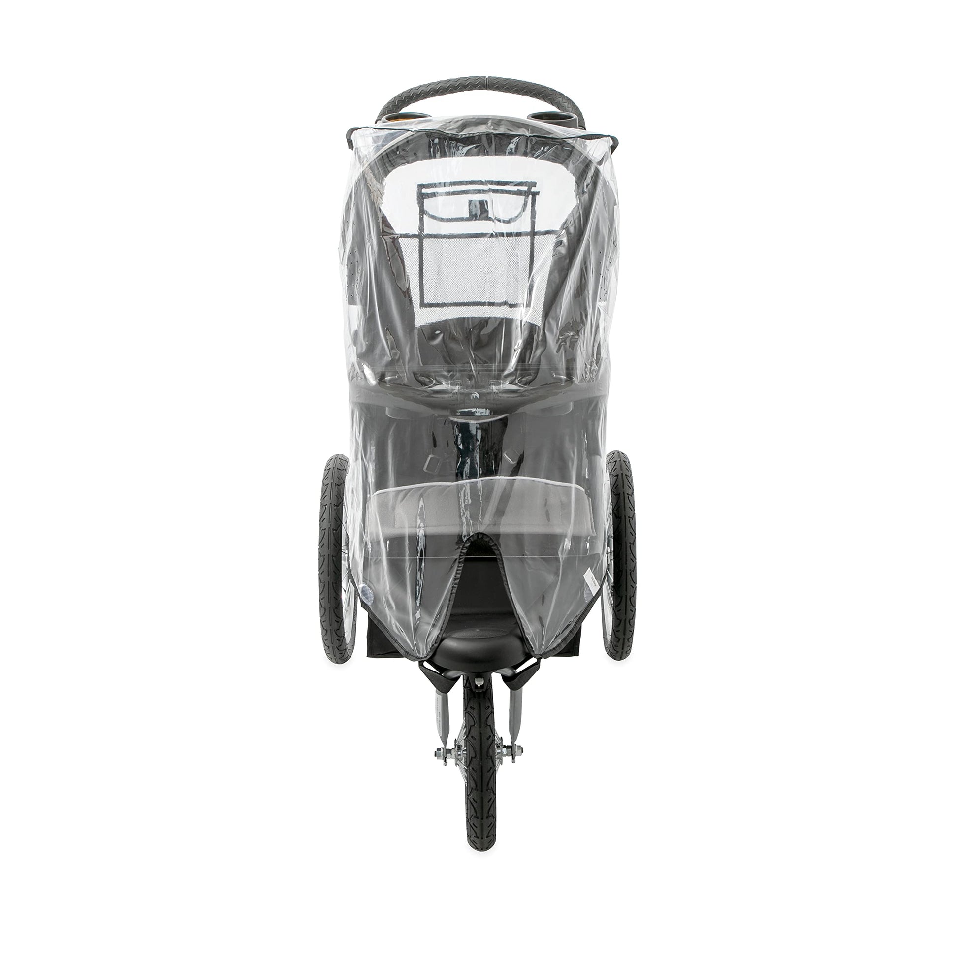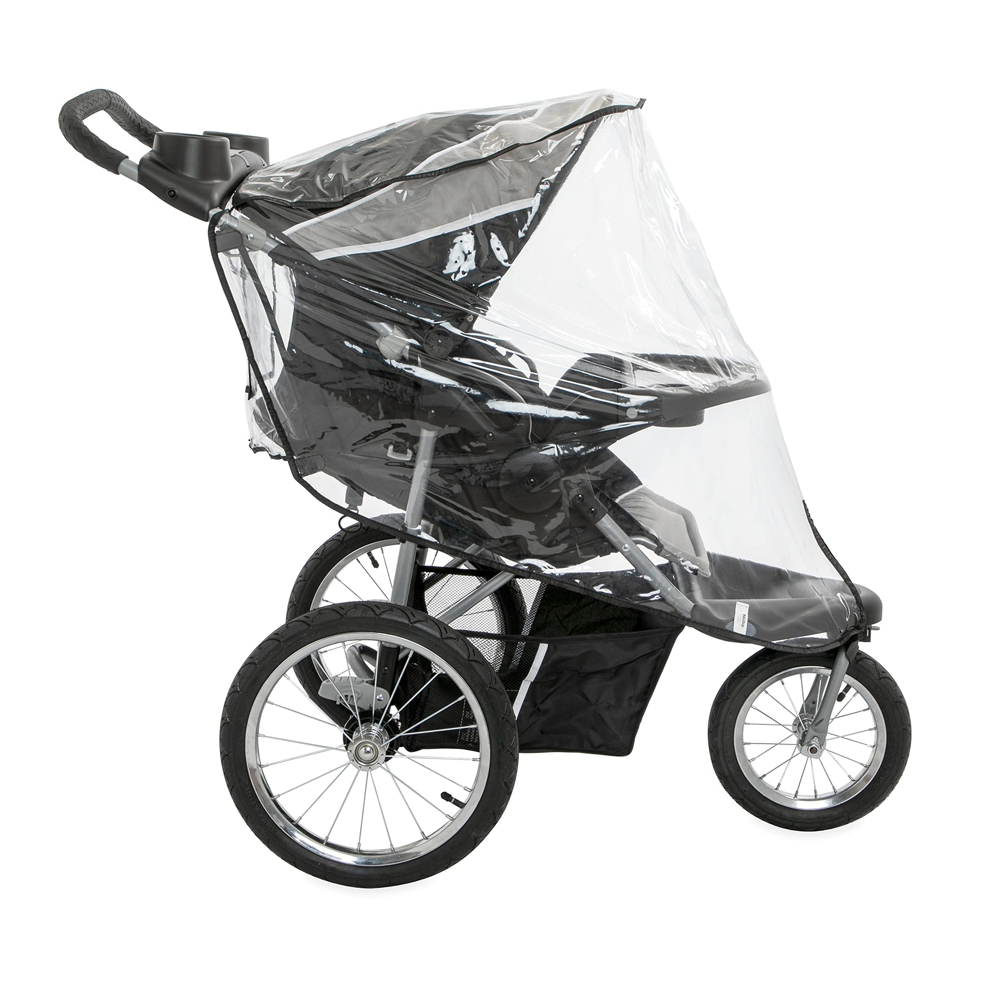 - Q: What size jogging strollers does the Nuby Rain Weather Shield fit? A: The Nuby Rain Weather Shield is designed to fit most jogging strollers, thanks to its universal sizing.