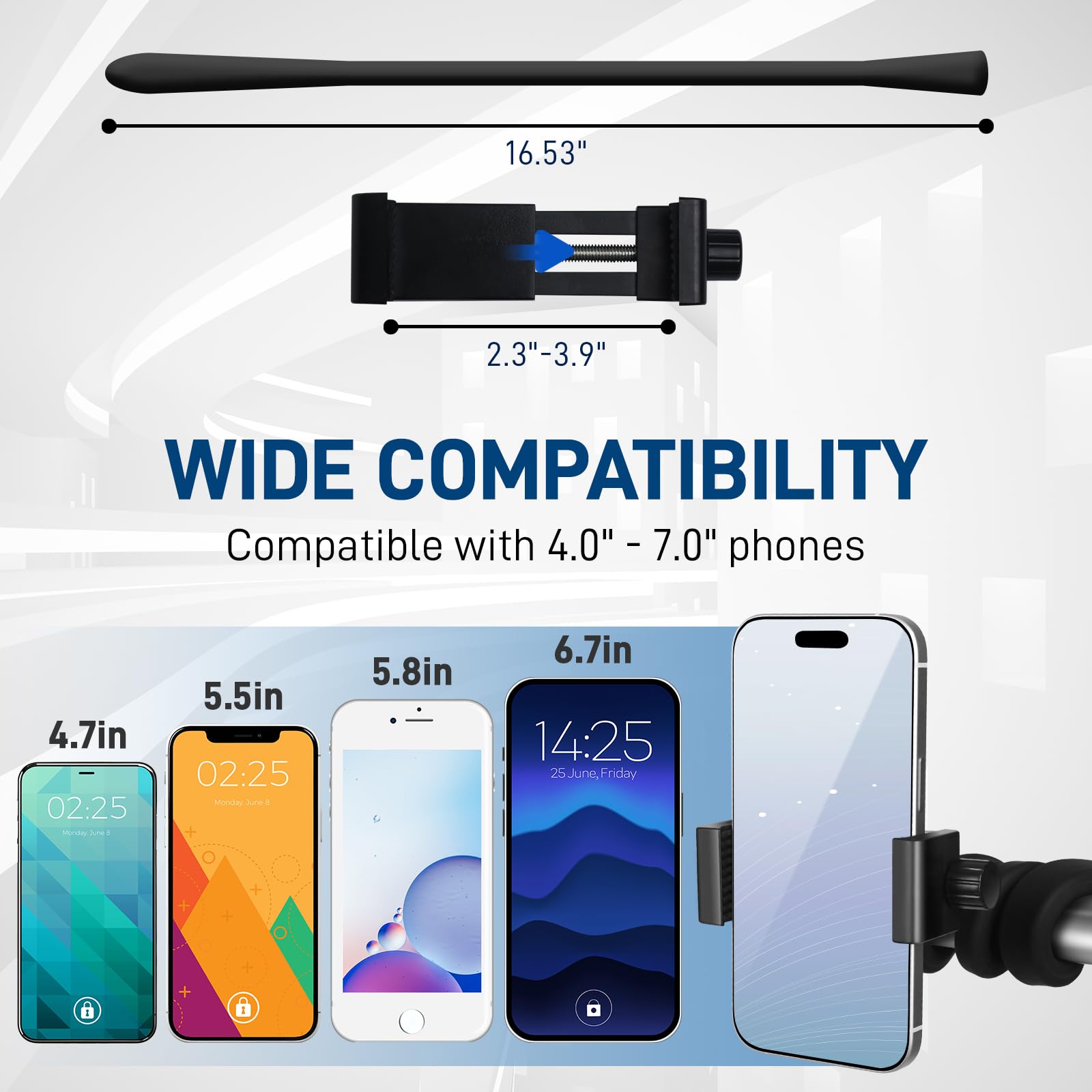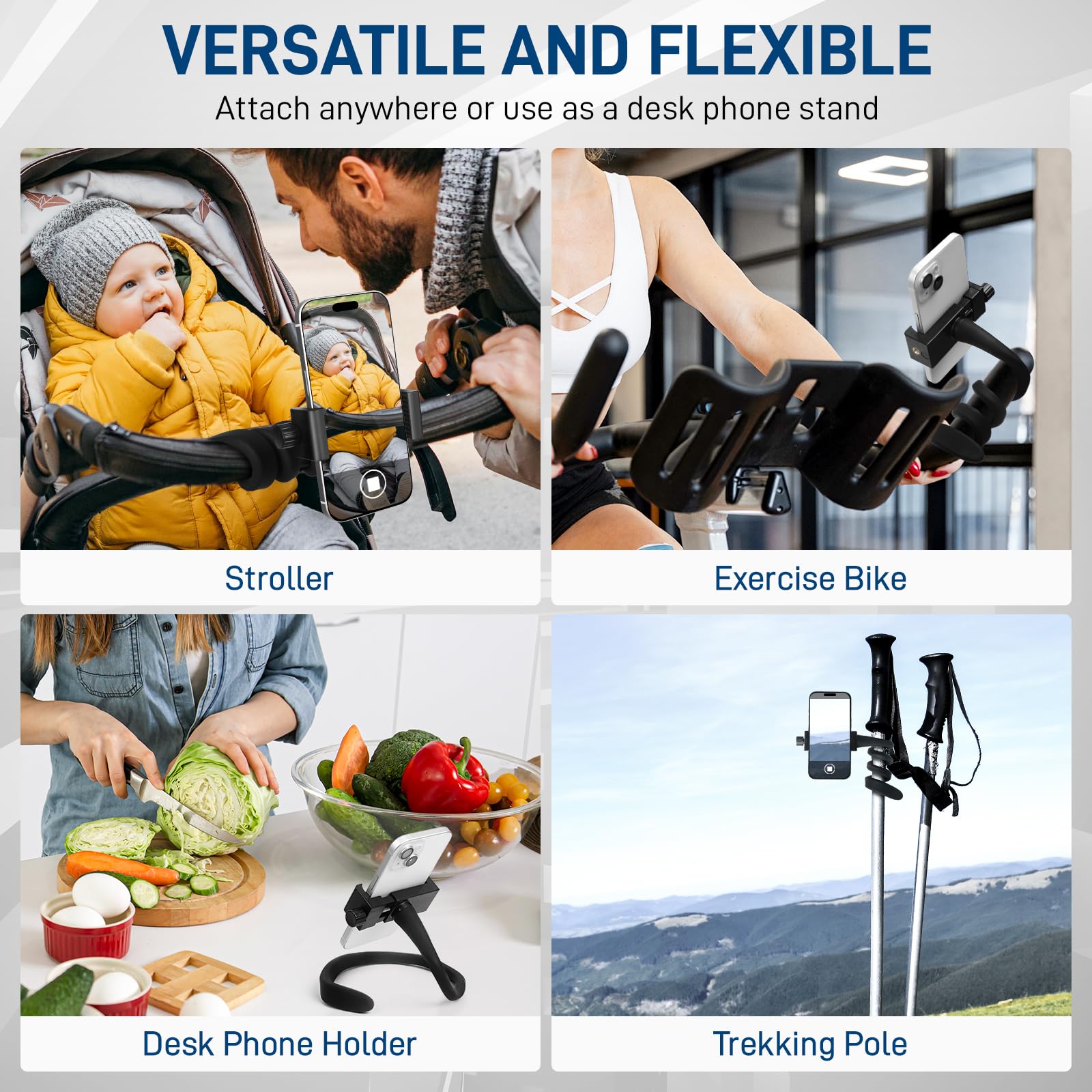 - Q: Can I use the holder while exercising? A: Yes, it's designed for hands-free convenience, allowing you to use it on strollers, shopping carts, treadmills, or spin bikes while staying connected.