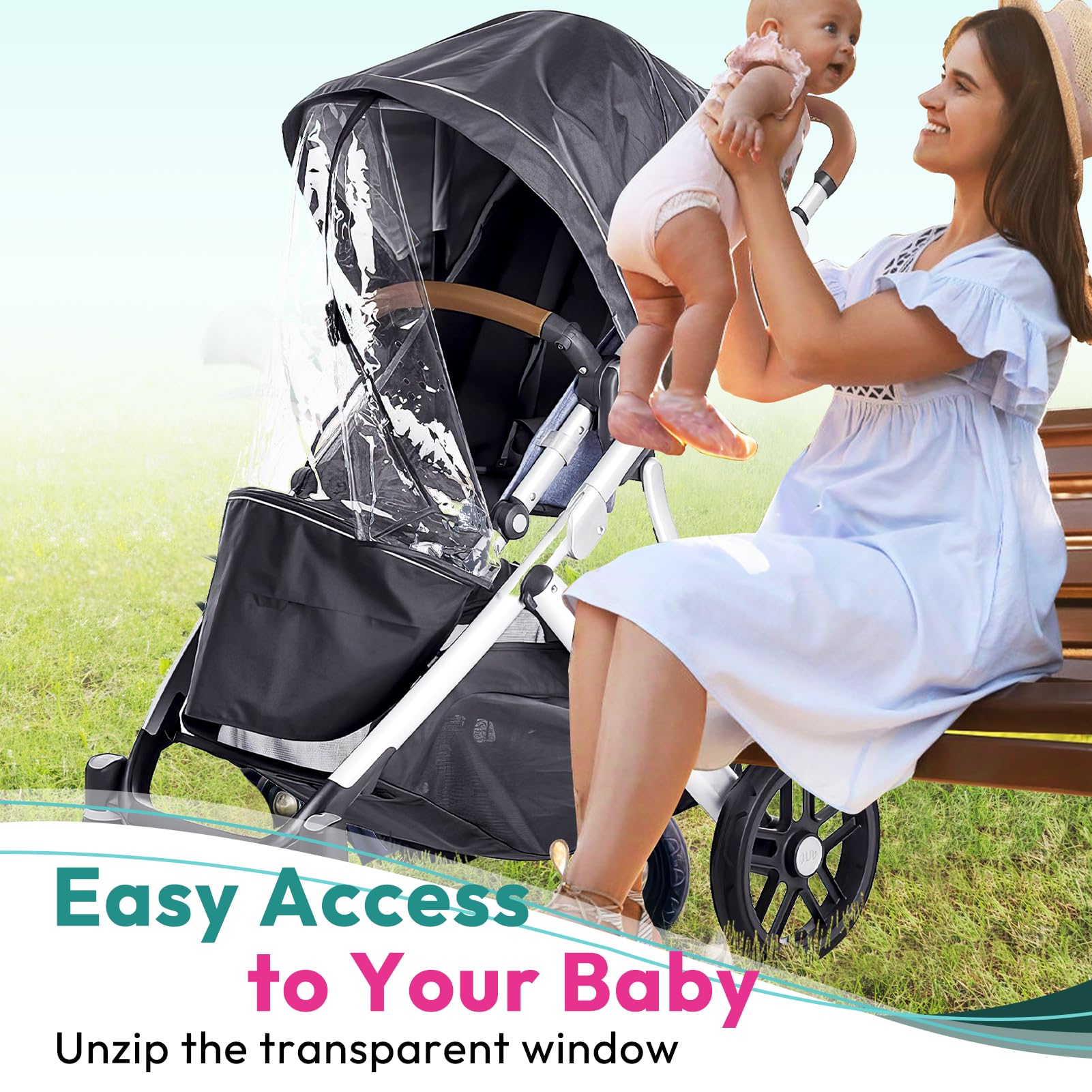 - Q: How does the zippered window work on the rain cover? A: The rain cover features a zippered window that allows for easy access to your baby without needing to remove the entire cover, while also providing a clear view of the outside.