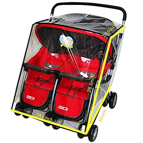 - Q: Will the rain cover fit side-by-side strollers? A: Yes, the rain cover is specifically designed to fit adjacent seat twin strollers.