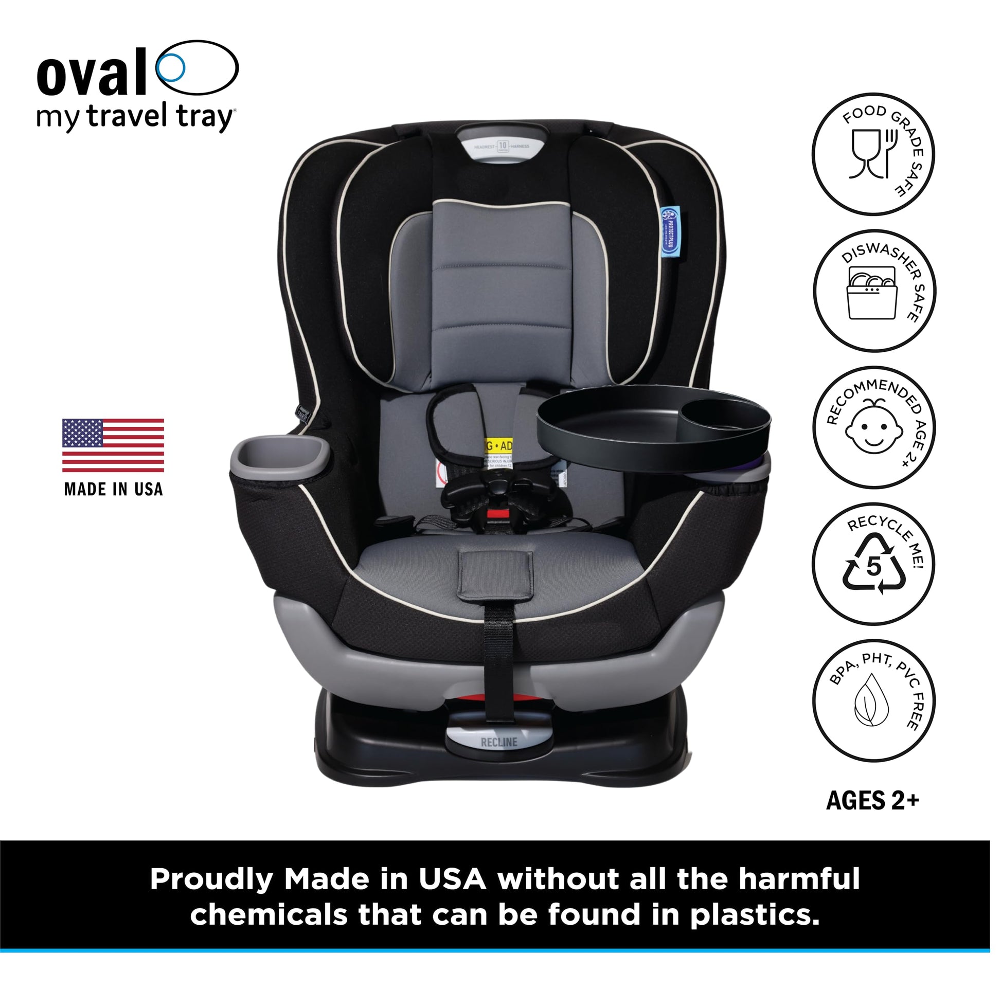 - Q: How does the Travel Tray fit into my car? A: The Travel Tray is designed to fit most cup holders. It comes with a complimentary cup adapter and a feature called 'Grippi' to provide four different sizes for compatibility.