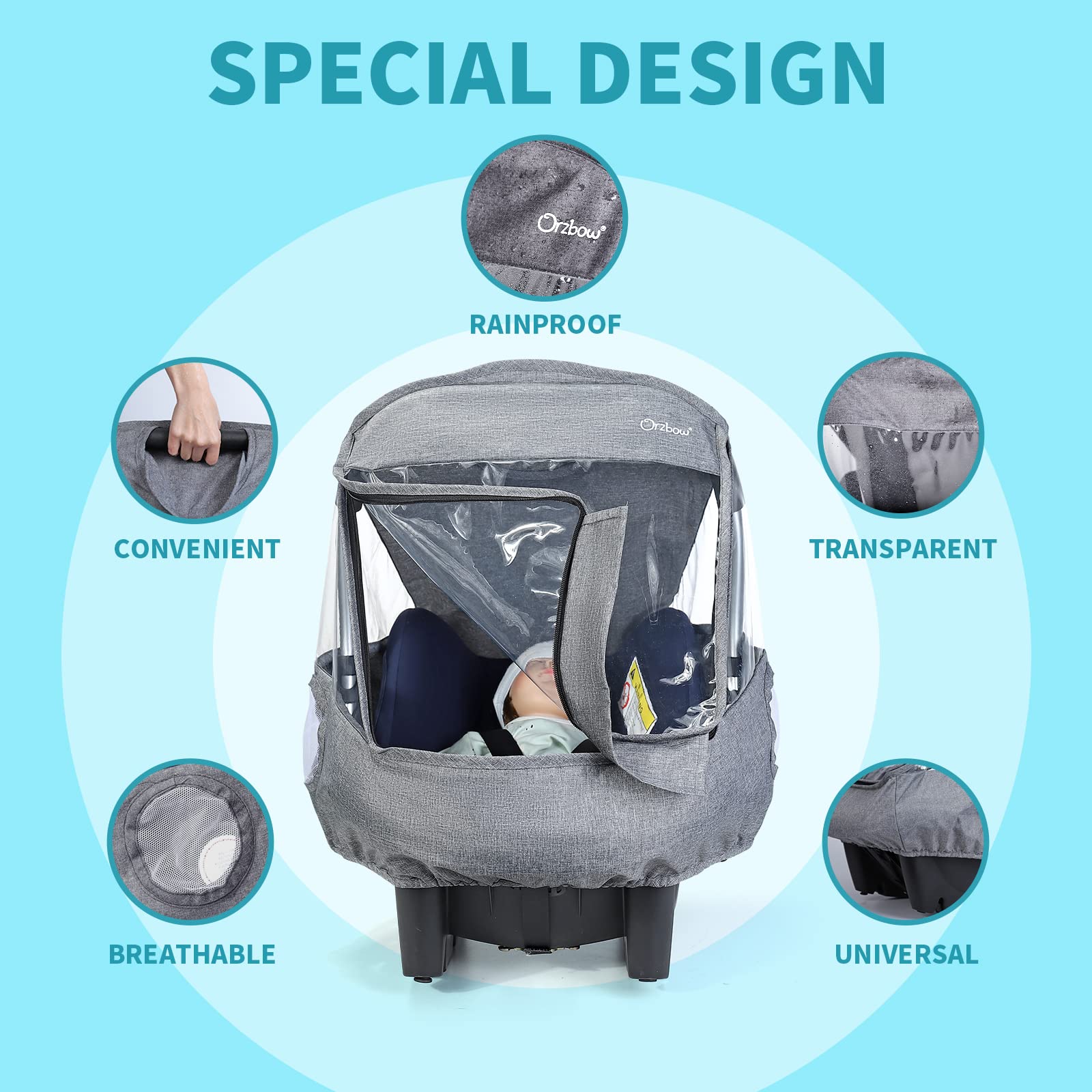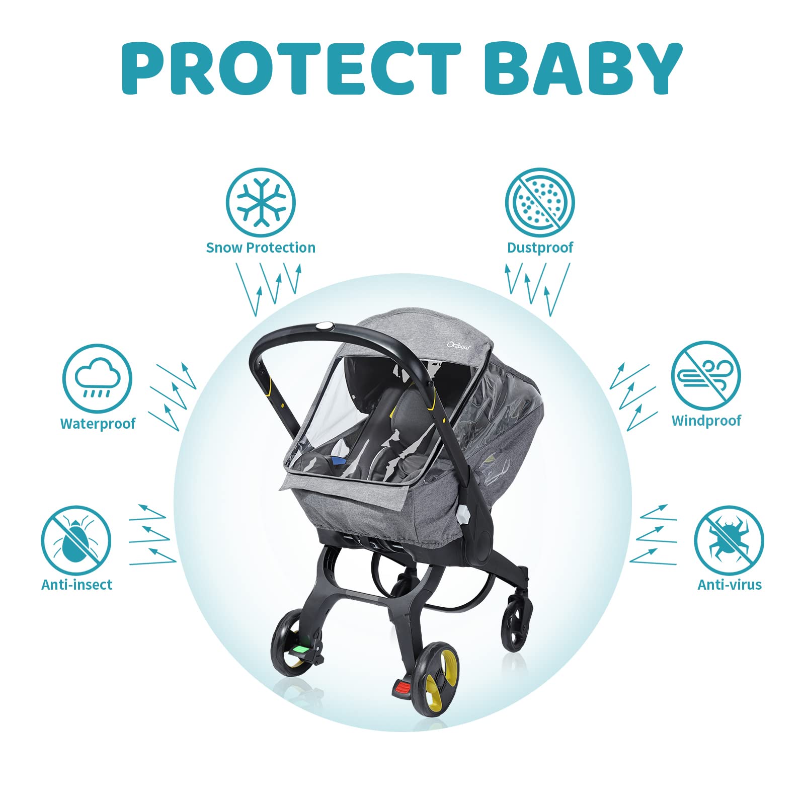 - Q: Can I see my baby while using the rain cover? A: Yes, the rain cover includes large, transparent windows that allow you to see your baby at all times while also providing them with a clear view of their surroundings.