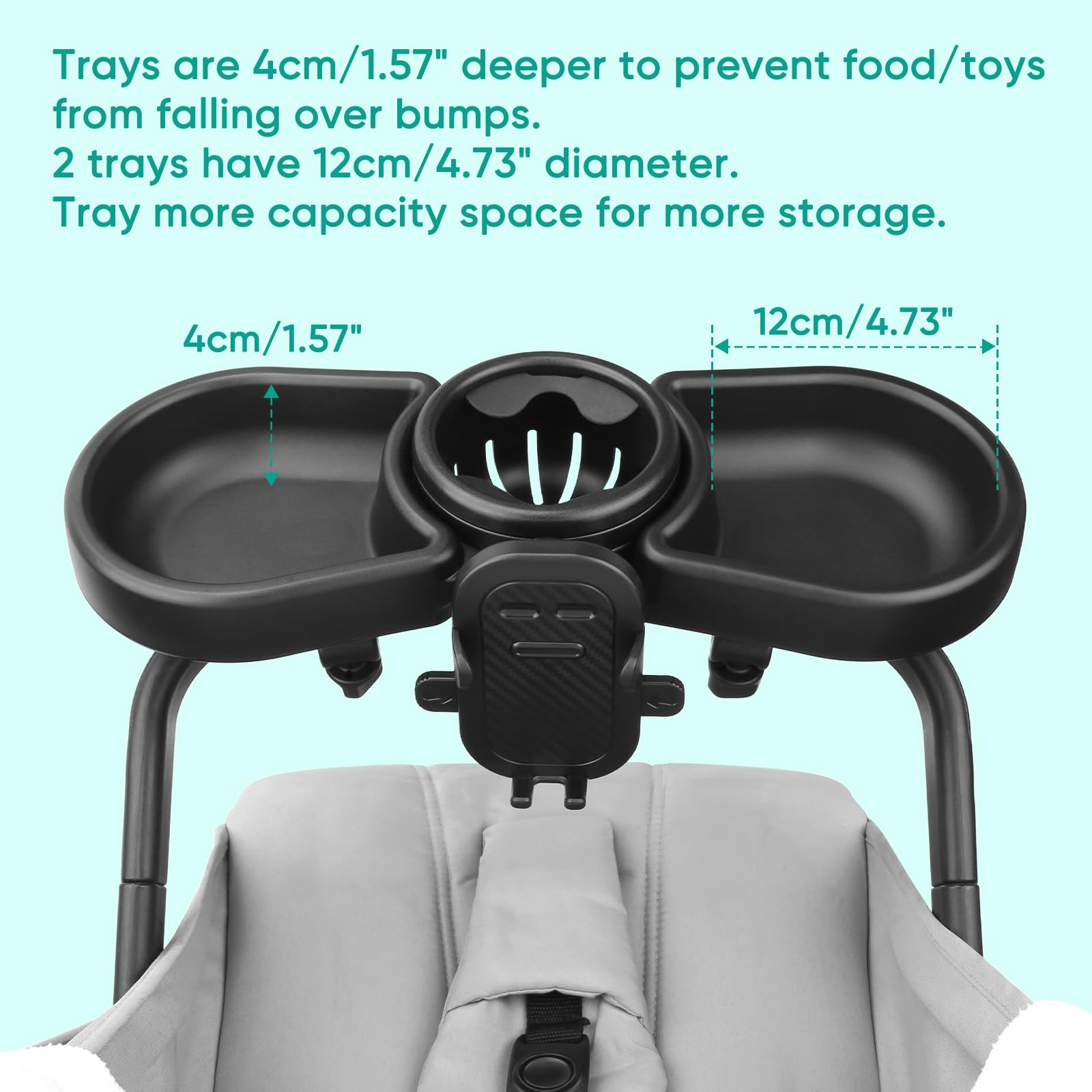 - Q: What age group is this stroller tray designed for? A: The Universal Stroller Snack Tray is suitable for babies and toddlers.