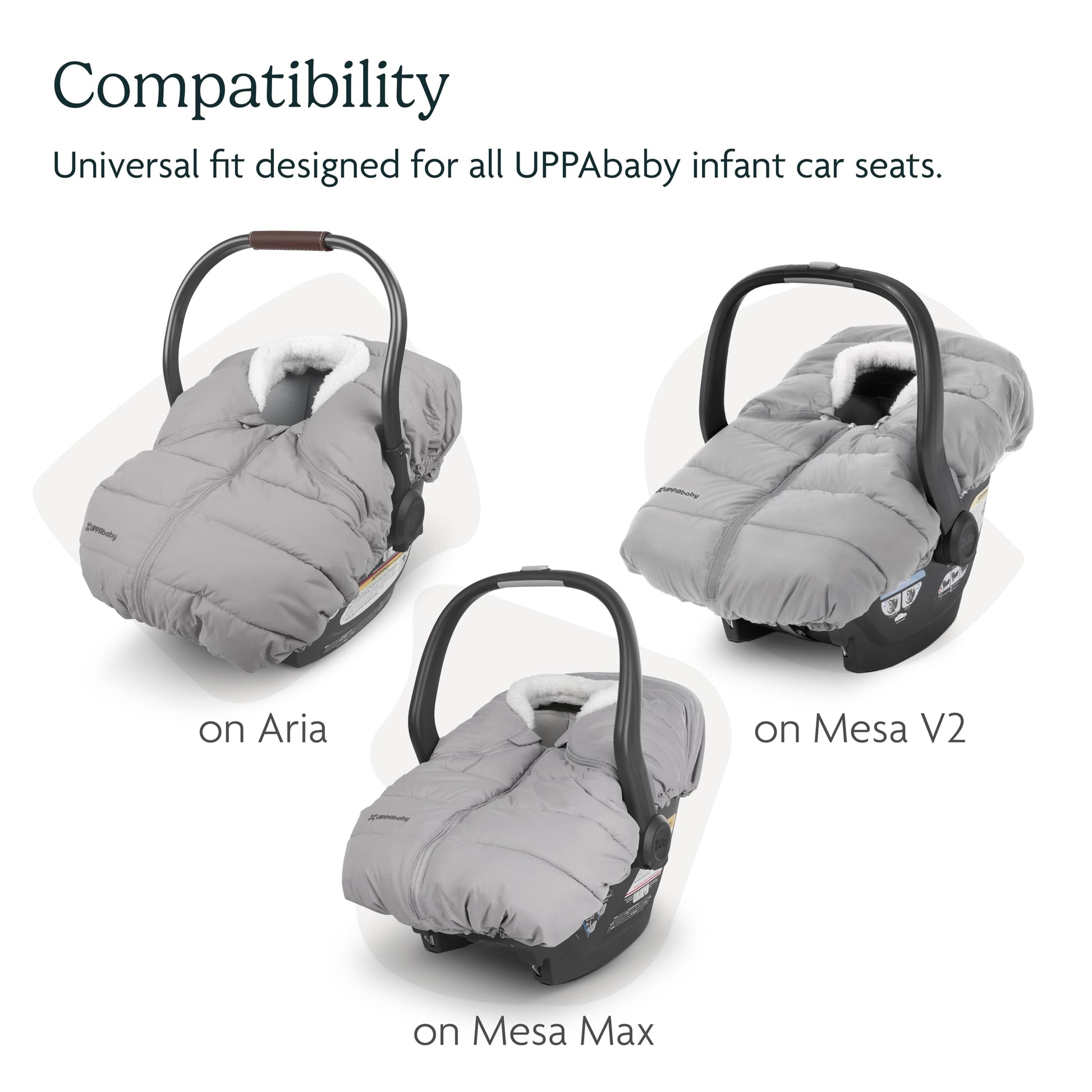 - Q: Is the CozyGanoosh compatible with other car seat models? A: Yes, the CozyGanoosh is compatible with UPPAbaby Aria, Mesa V2, and Mesa Max infant car seats.