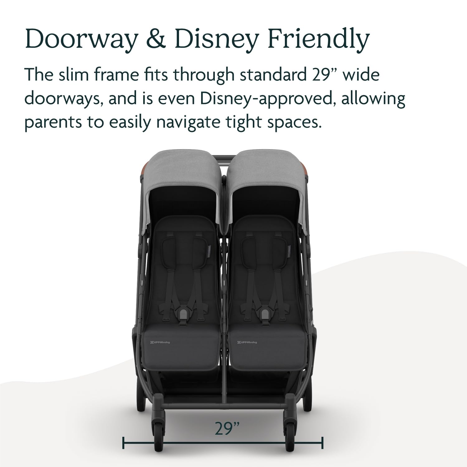 - Q: Can the UPPAbaby Minu Duo stroller fit through standard doorways? A: Yes, the UPPAbaby Minu Duo has a slim frame designed to fit through standard 29 inches wide doorways, making it travel-friendly.