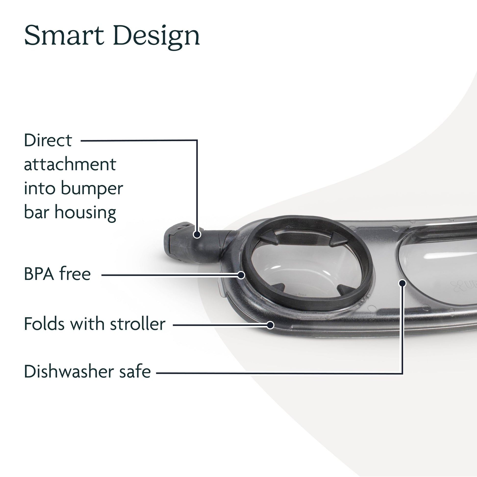 - Q: How does the Snack Tray attach to the stroller? A: The Snack Tray attaches directly into the bumper bar housing of the Vista, Cruz, or RumbleSeat, ensuring a secure fit while being easy to install and remove.