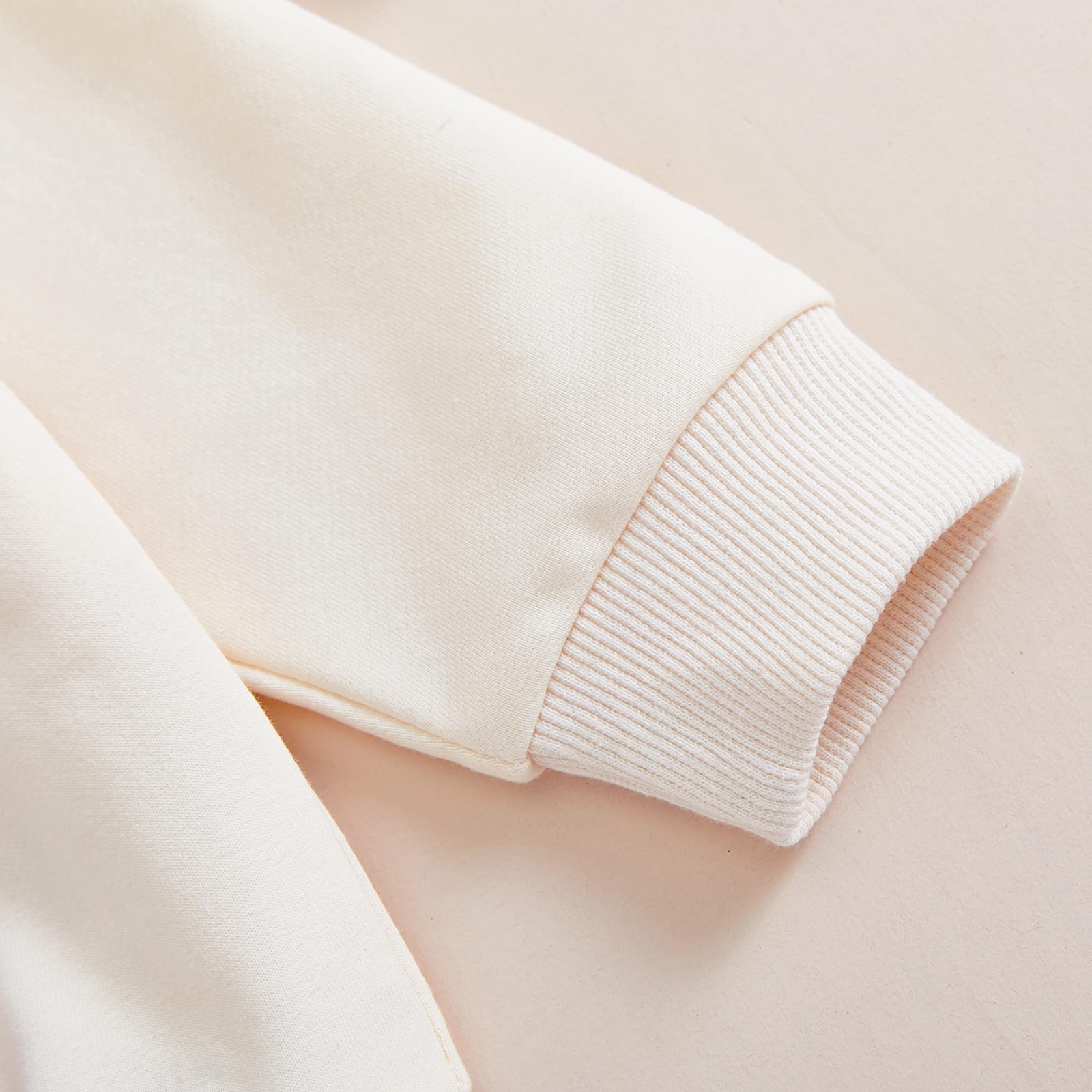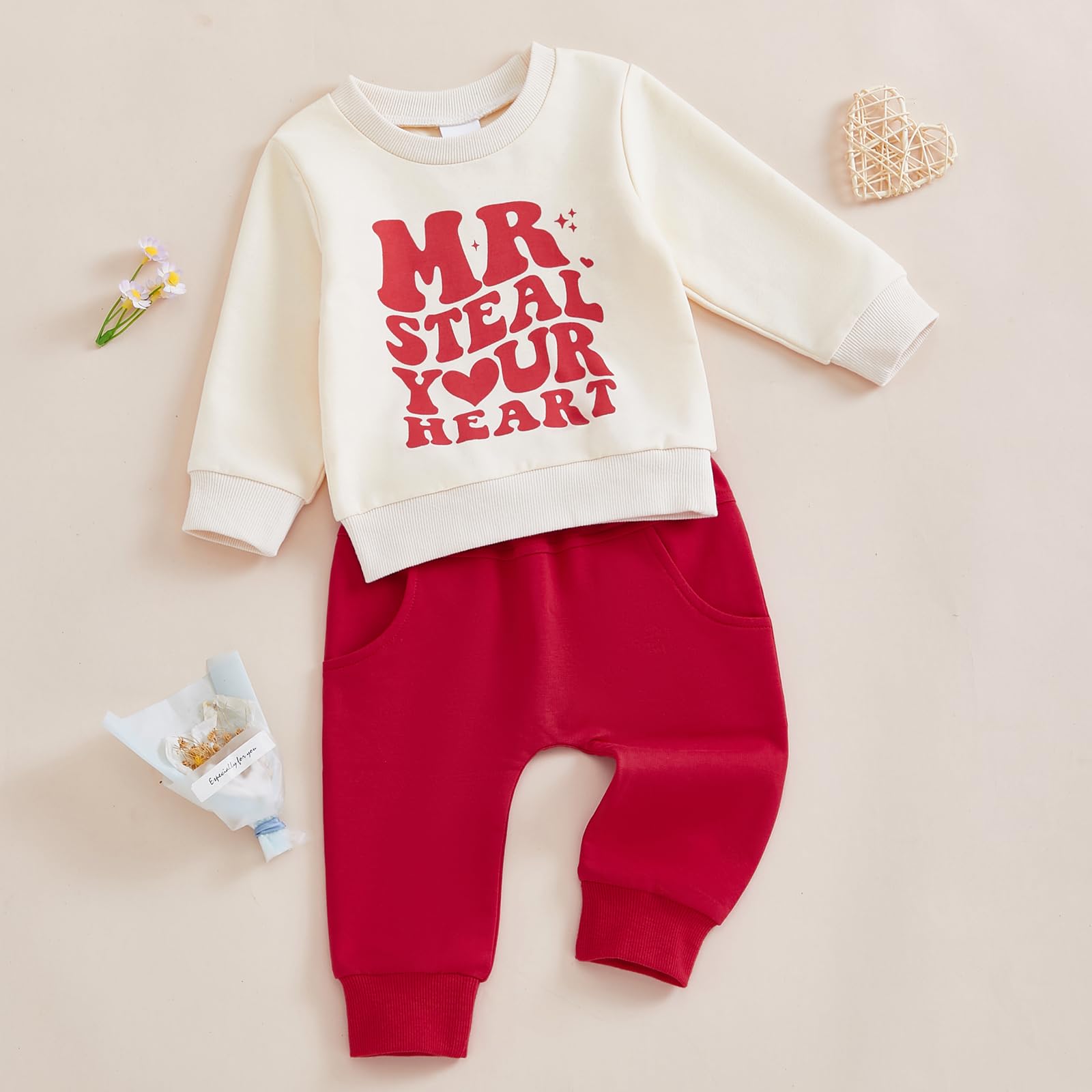 - Q: What design features does the outfit have? A: The outfit features a long sleeve crewneck sweatshirt with a fun letter print and matching jogger pants with pockets, offering a casual and fashionable style.