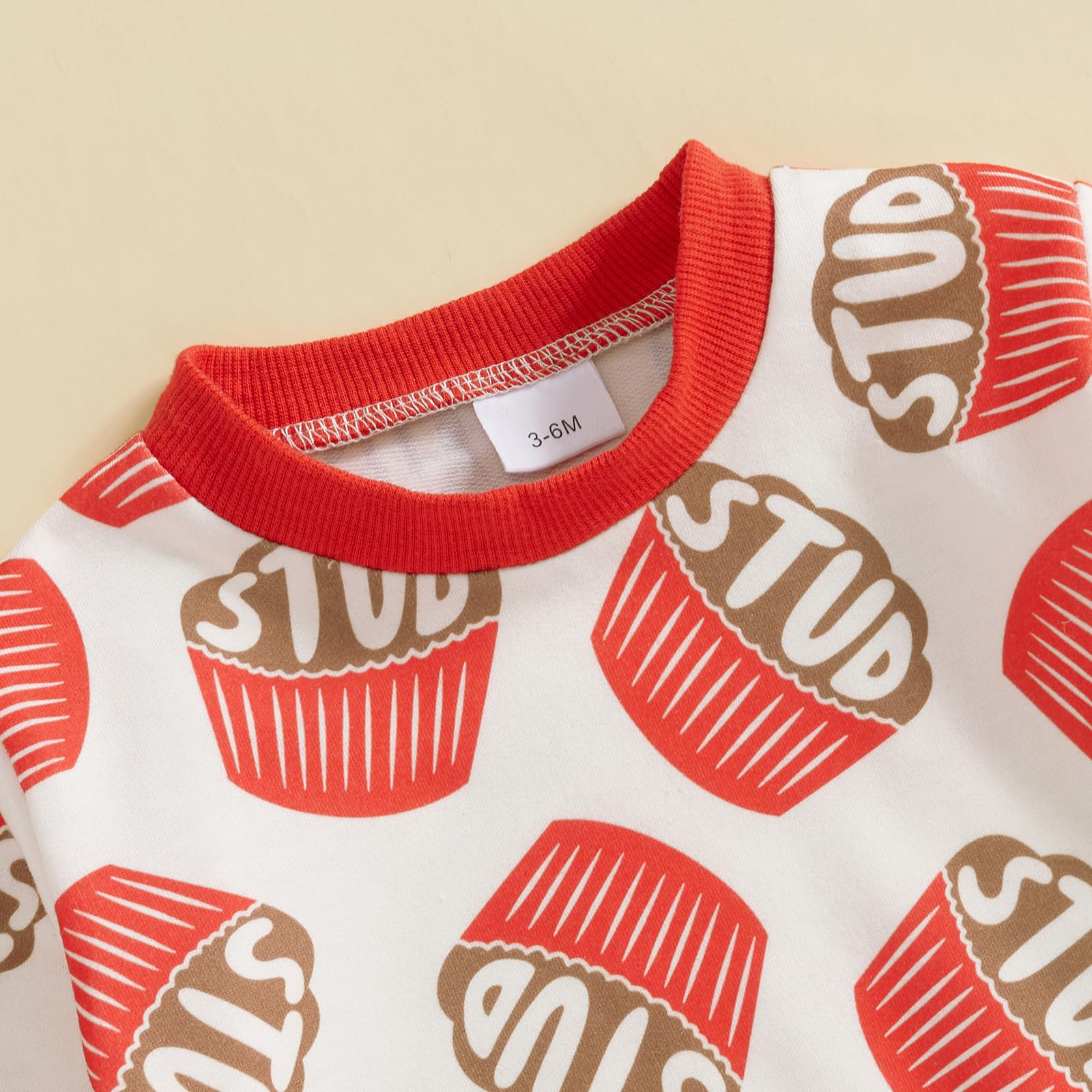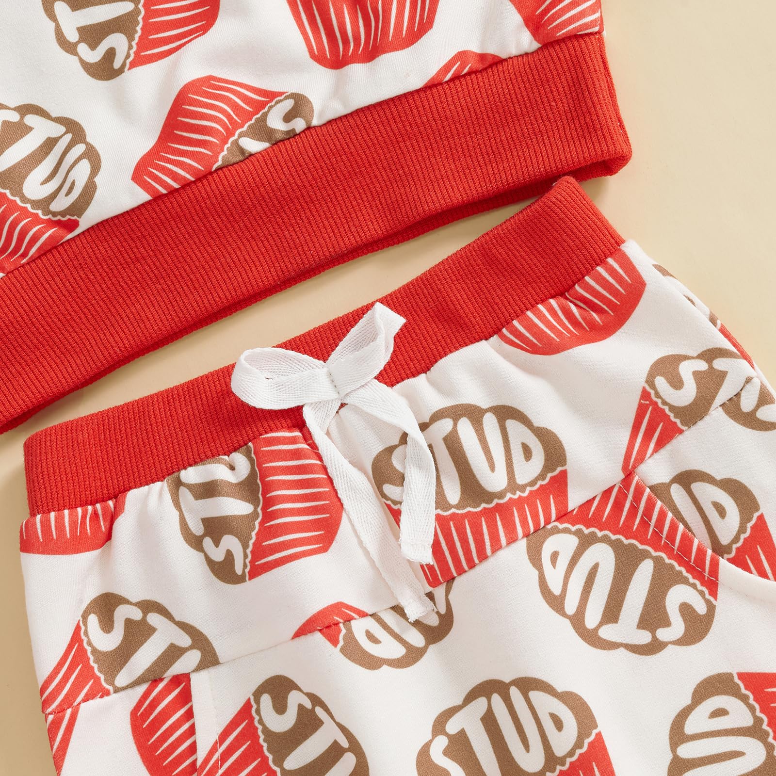 - Q: What is the design of this toddler outfit? A: The outfit features a long-sleeve crewneck sweatshirt with a letter print and matching jogger pants, combining style with comfort.