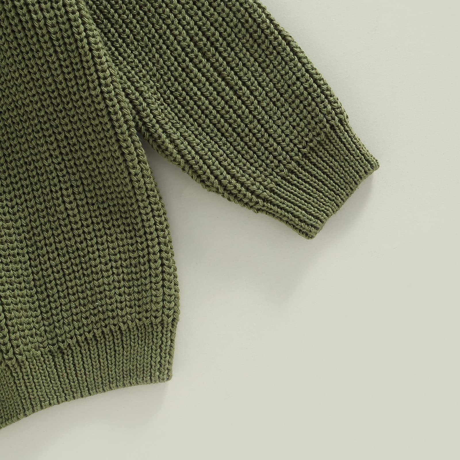 - Q: What color options are available for this sweater? A: The sweater is available in Army Green, providing a stylish and versatile option for your child's wardrobe.