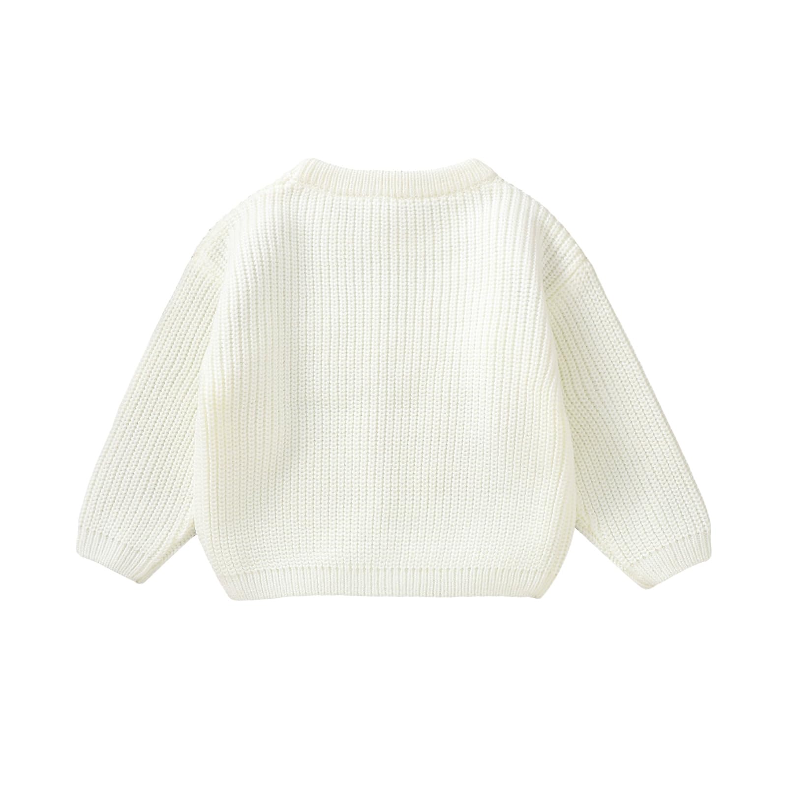 - Q: Does the sweater have any specific design features? A: Yes, it features letter embroidery, a crew neck, and long sleeves, making it a stylish choice for your toddler.