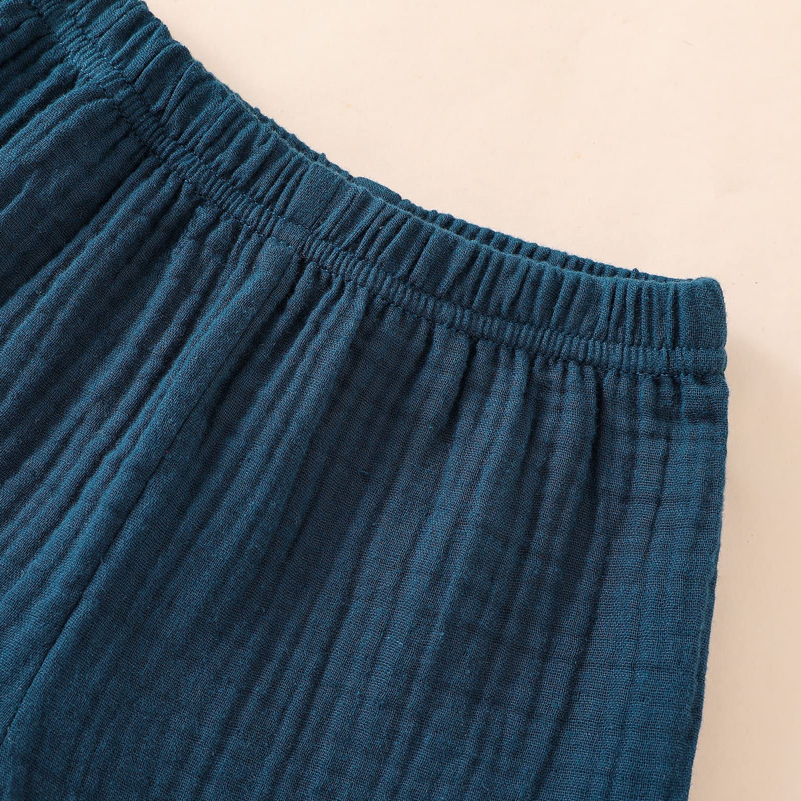 • Q: What are the features of this Baby Boys Clothes Set? A: This set includes a short sleeve button-down shirt with lapel neck, buttons, and pockets, along with elastic waist cotton gauze shorts. It is designed for comfort and casual wear.