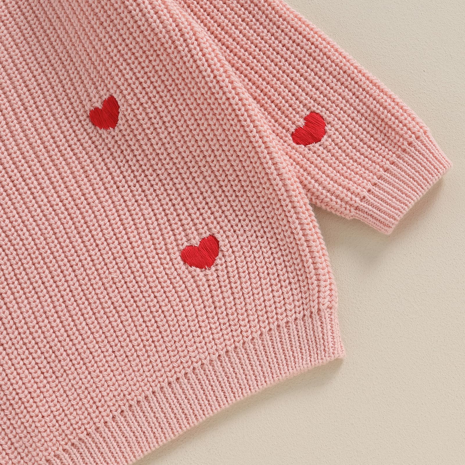 - Q: What is the style of this sweater? A: The sweater features a casual style with long sleeves, a crew neck, and love or heart embroidery, making it fashionable and cute for your toddler.