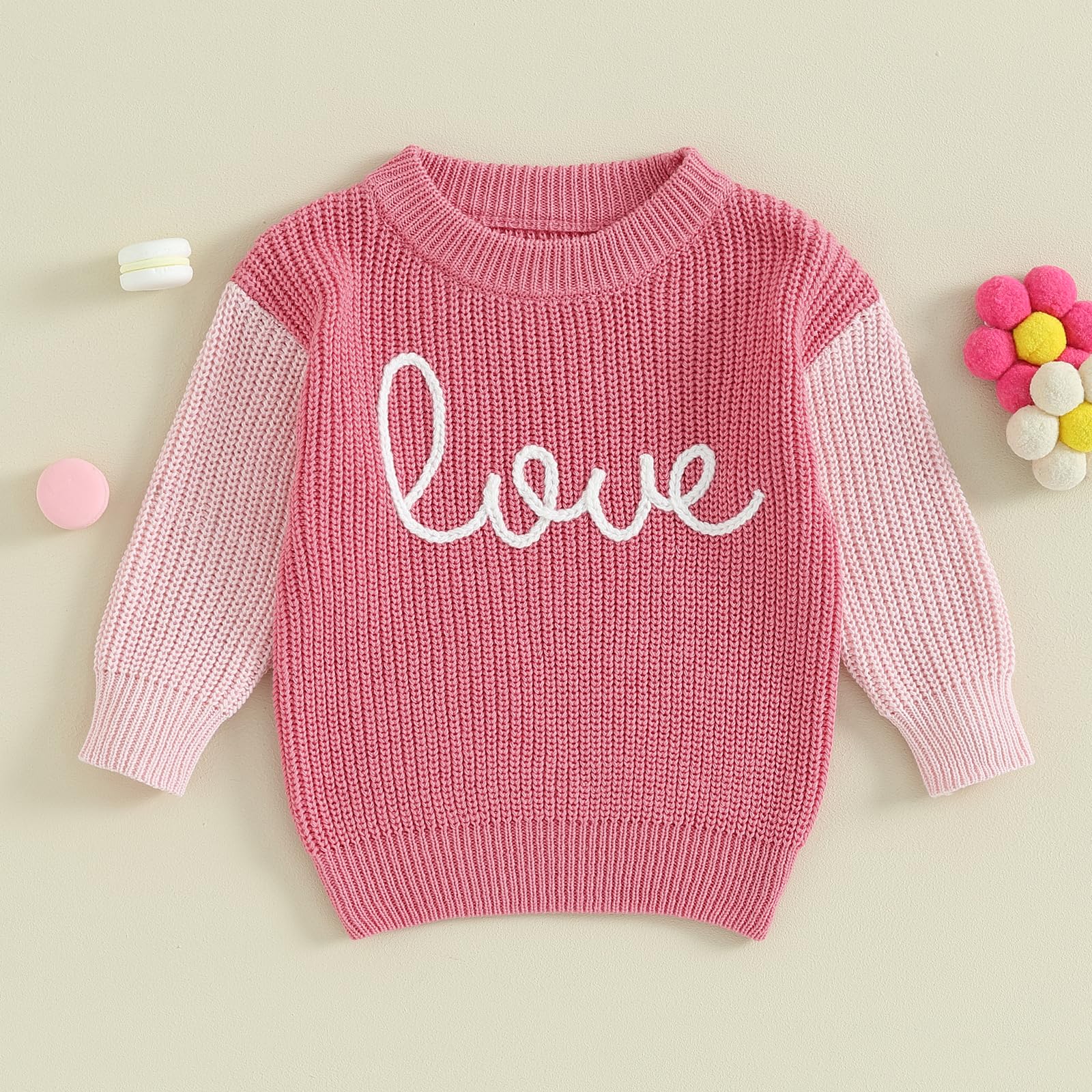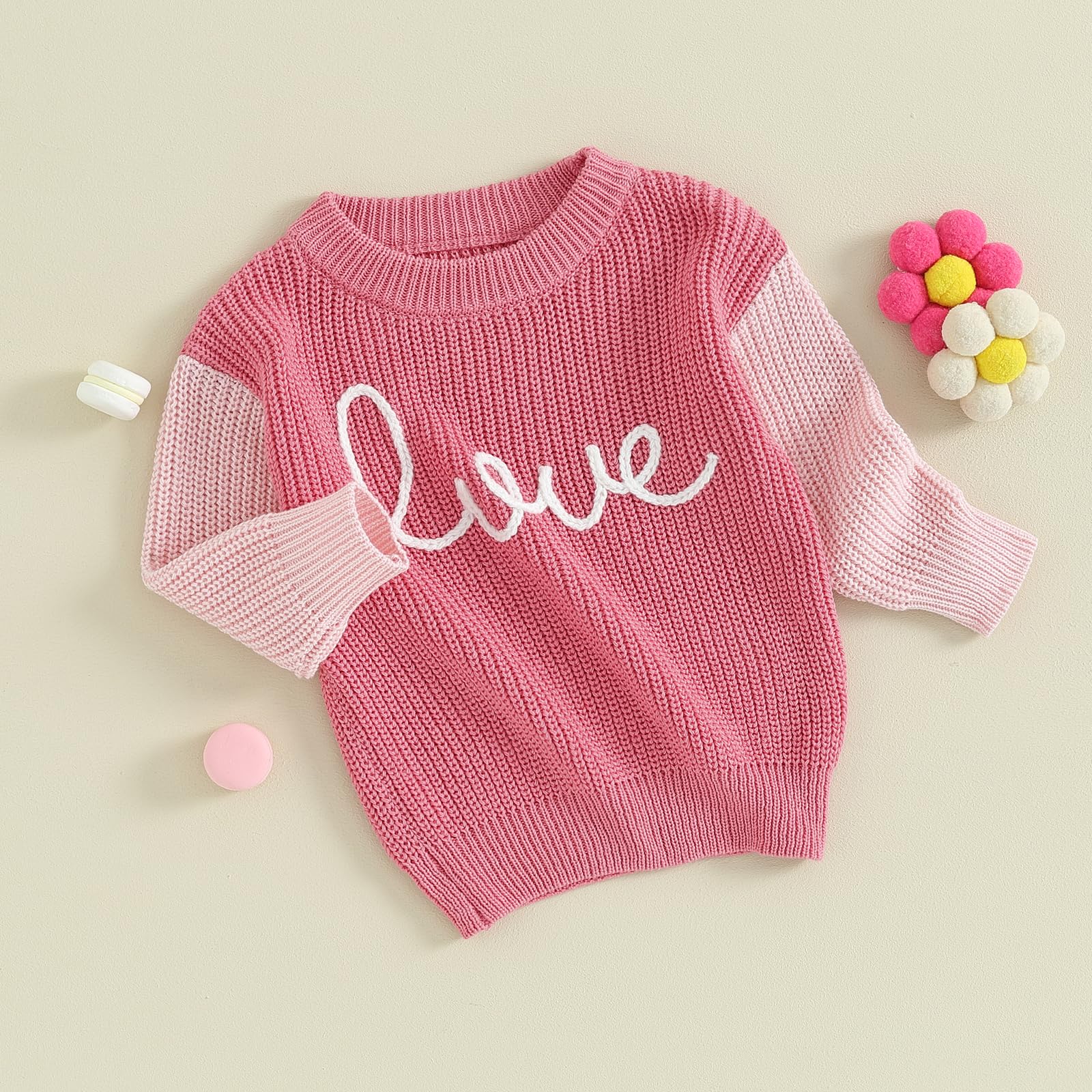 - Q: Are there any color variations for this sweater? A: The sweater is available in a pink love design, but color may vary slightly due to different PC displays.