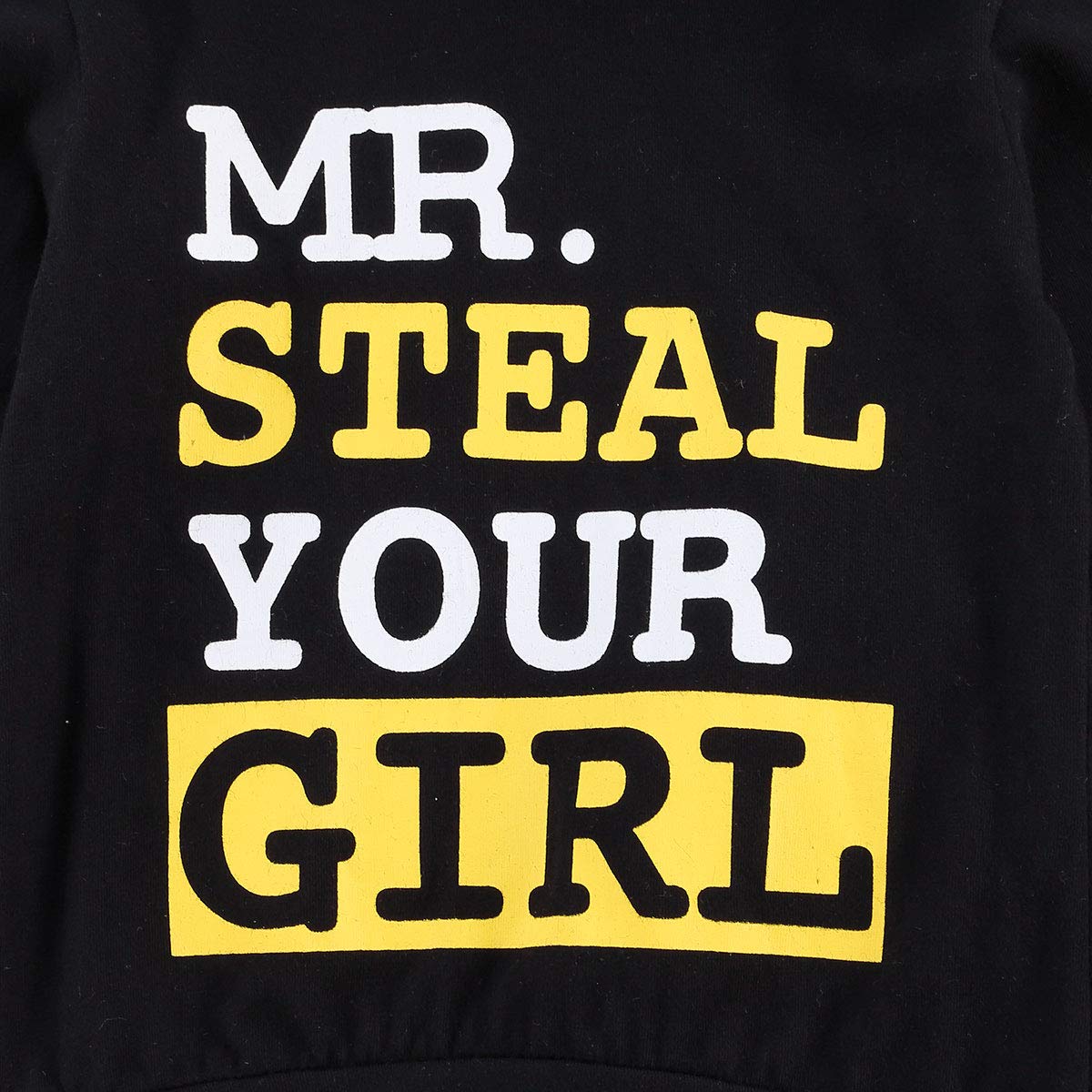 • Q: What are the slogans featured on this outfit? A: The slogans on the outfit include 'MR. STEAL YOUR GIRL', 'THE GIRLS JUST LOVE ME', and 'AiN'T NO MAMA LIKE THE ONE I GOT'.