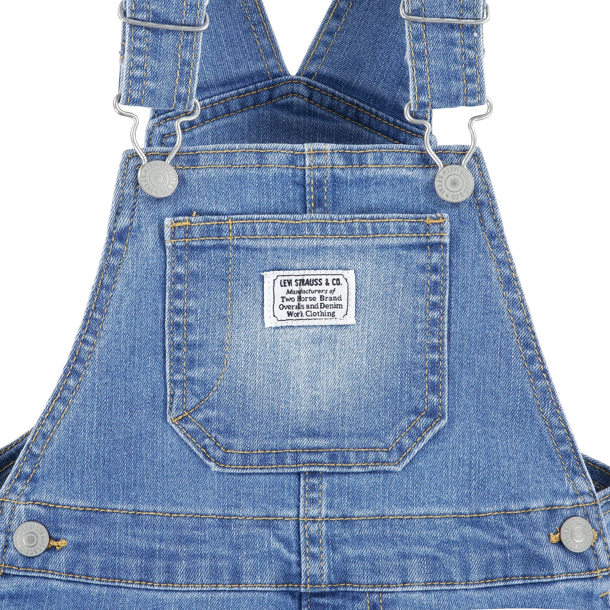 - Q: What design elements does this overall feature? A: The overall is inspired by vintage American workwear and includes distressed touches for a lived-in look, along with signature Levi's back pockets.