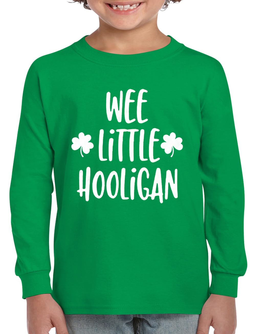 - Q: What design features does this shirt have? A: The shirt is adorned with a lucky shamrock print and has a simple crewneck design, adding a fun pop to your kid's Irish wardrobe.