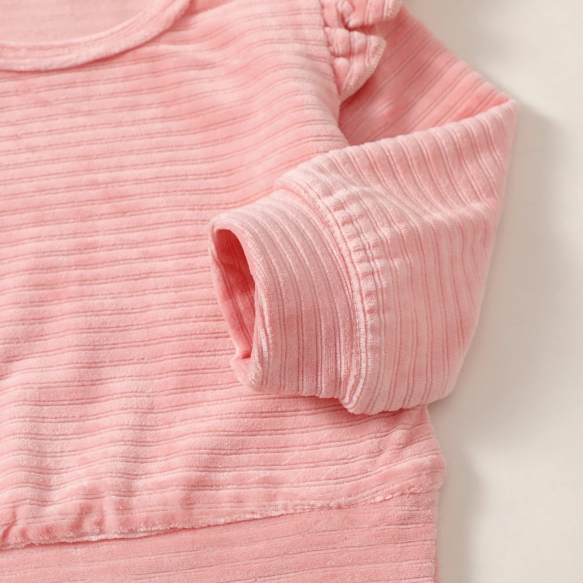 - Q: What types of clothing does this set include? A: The set includes a pullover sweatshirt and matching pants, providing a complete outfit for your baby girl.