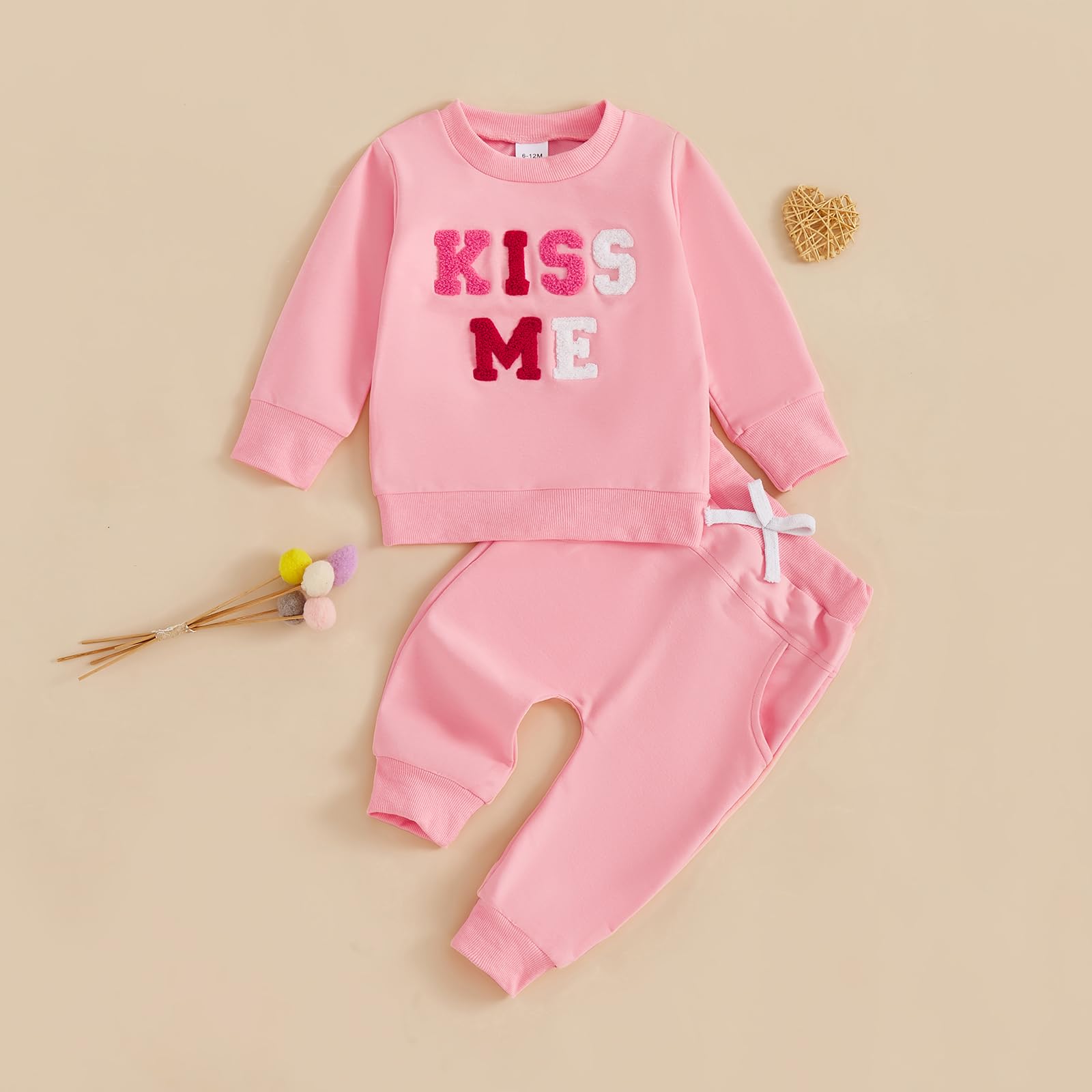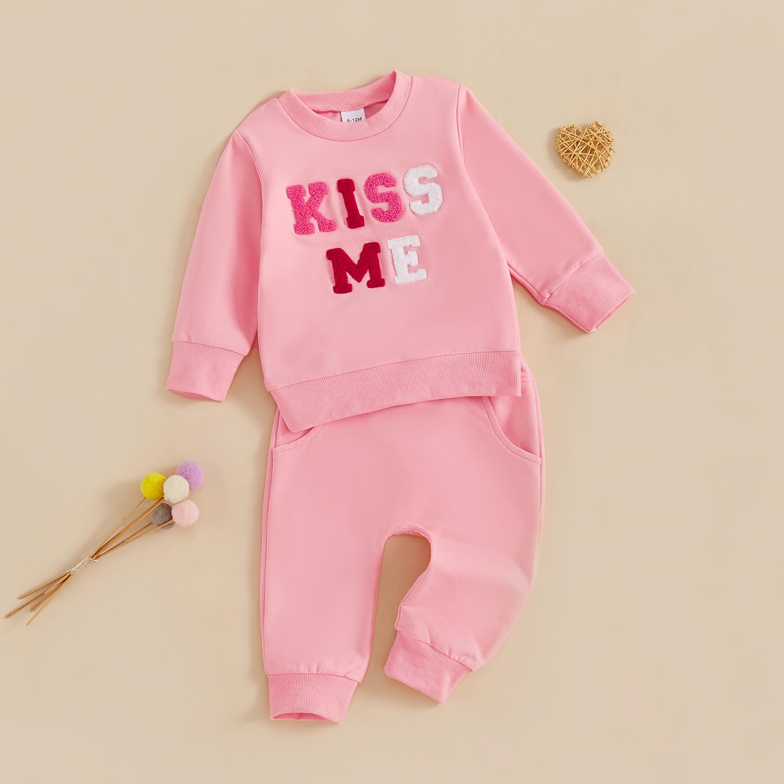- Q: What design features does the outfit have? A: The outfit features letter embroidery, a crew neck, long sleeves, and elastic waist pants for easy fit.