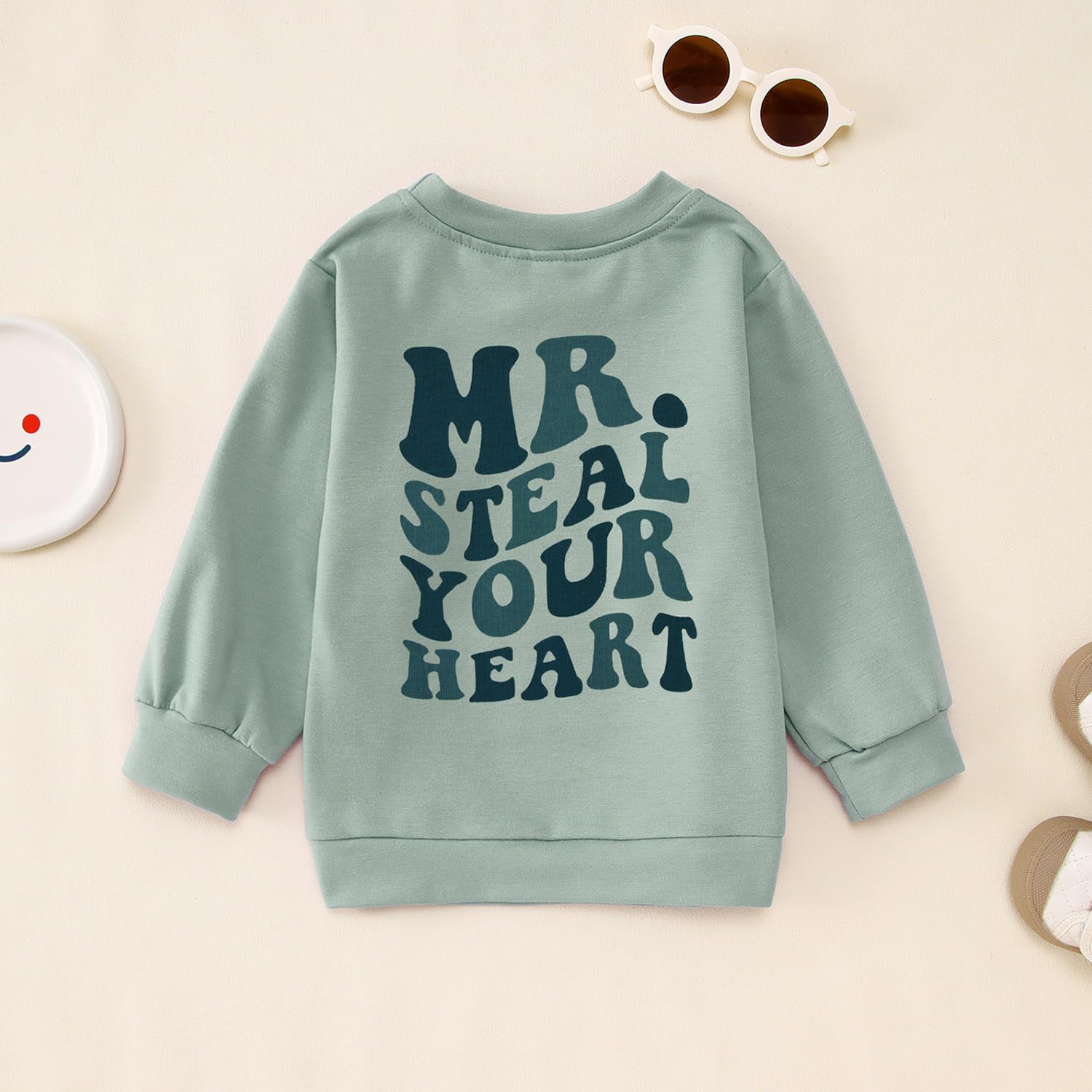 - Q: What is included in the package when purchasing this sweatshirt? A: The package includes one Ritatte Toddler Boys Mr. Steal Your Heart Sweatshirt.