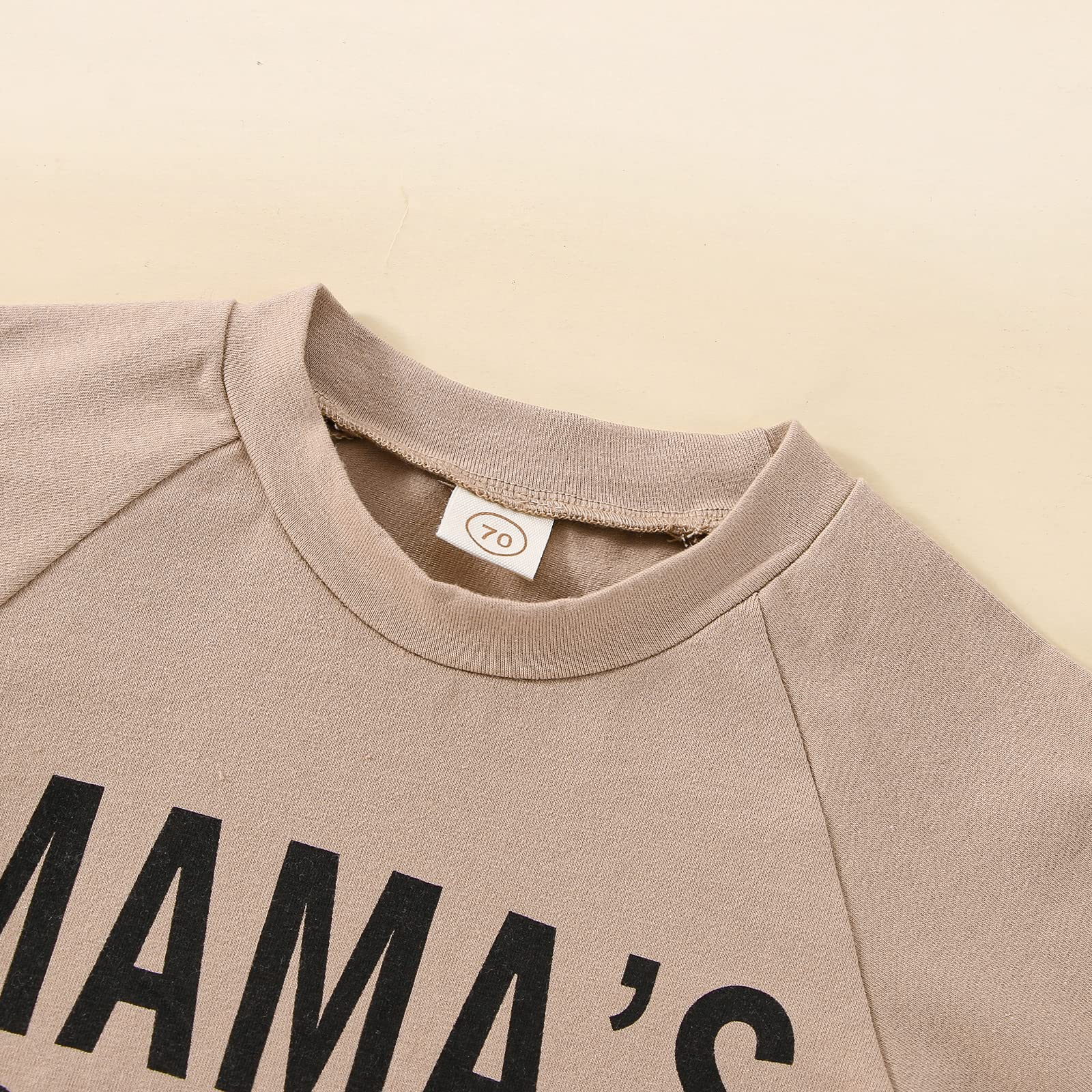- Q: What design features does this outfit have? A: The outfit features a crew neck, long sleeves, a letter print design, and a drawstring elastic waist for added comfort.